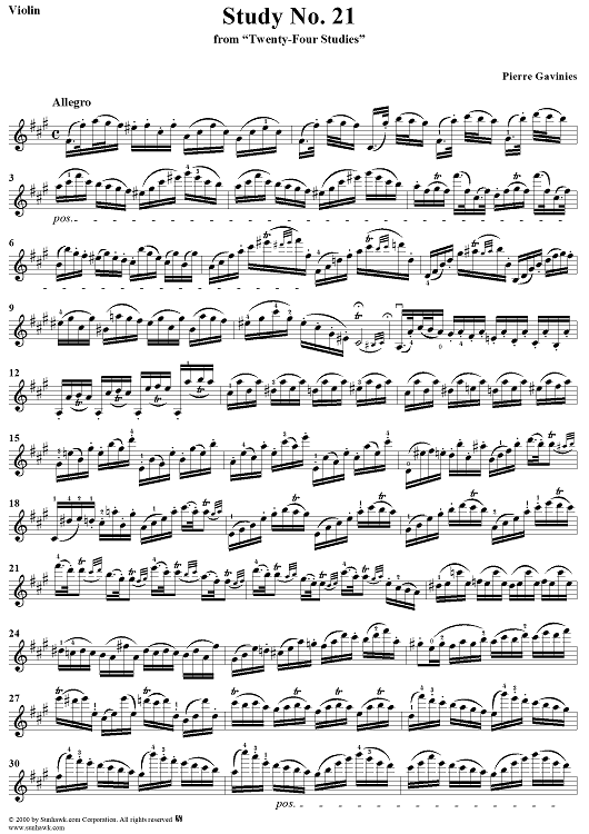 Digital Sheet Music for Study No. 21 by Pierre Gavinies scored for Violin Studies; id:173734