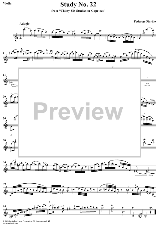 Digital Sheet Music for Study No. 22 by Federigo Fiorillo scored for Violin Studies; id:191648