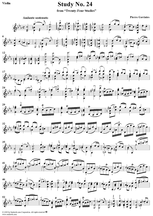 "Study No. 24" Sheet Music by Pierre Gavinies