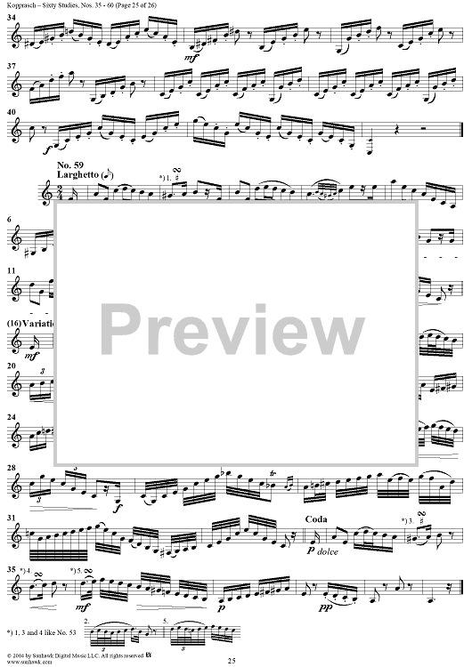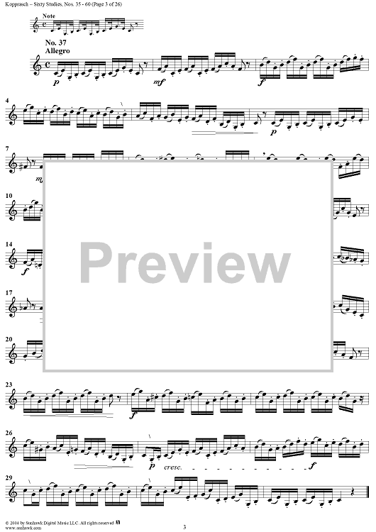 "Study Nos. 35-60" Sheet Music by C. Kopprasch