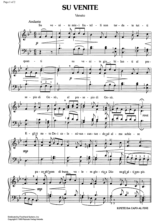 Digital Sheet Music for Su venite (Veneto) by Enrico Battistoni, Traditional scored for Piano/Vocal; id:329280
