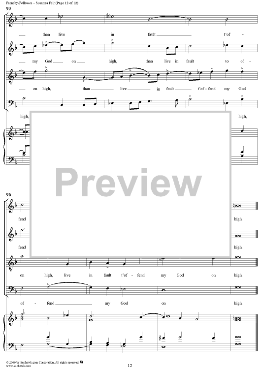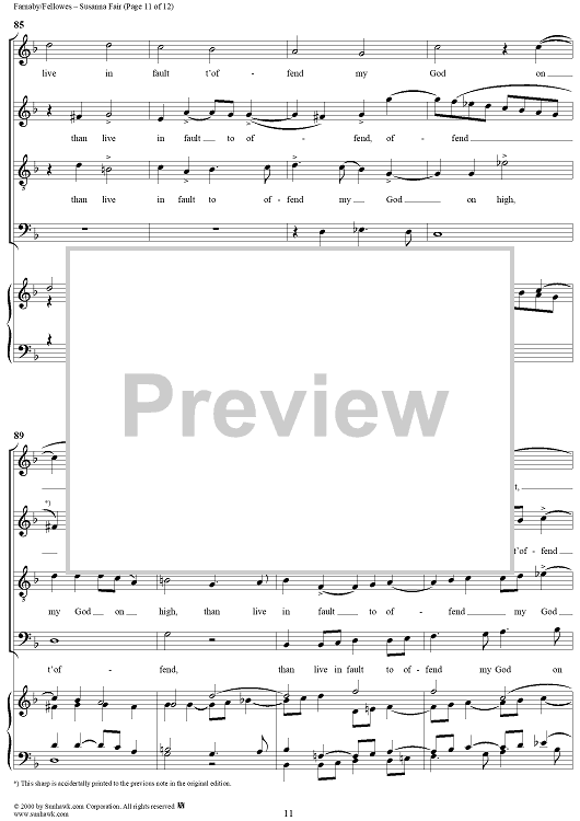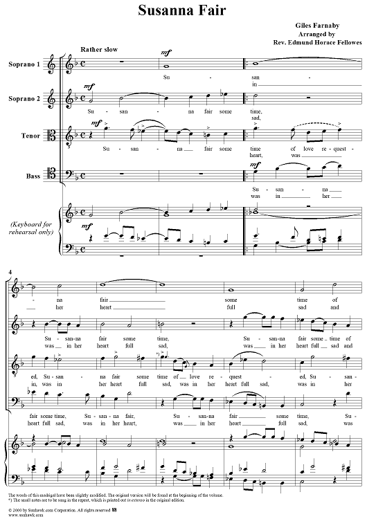 Digital Sheet Music for Susanna Fair by Giles Farnaby, Rev. Edmund Horace Fellowes scored for Four-part Mixed Chorus; id:269443