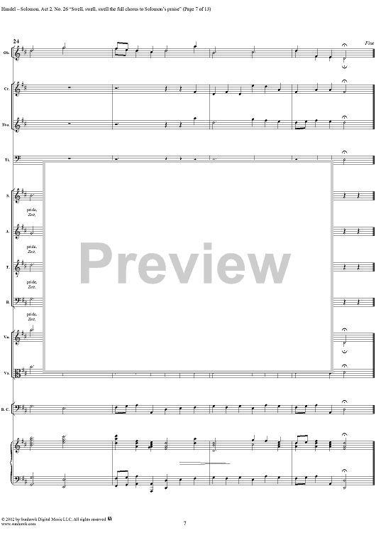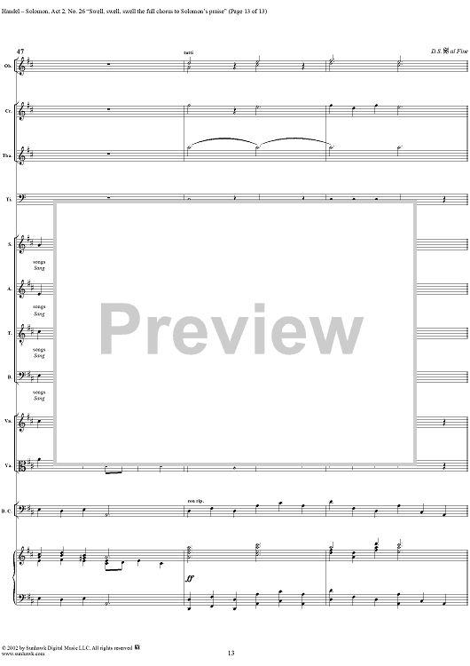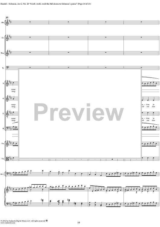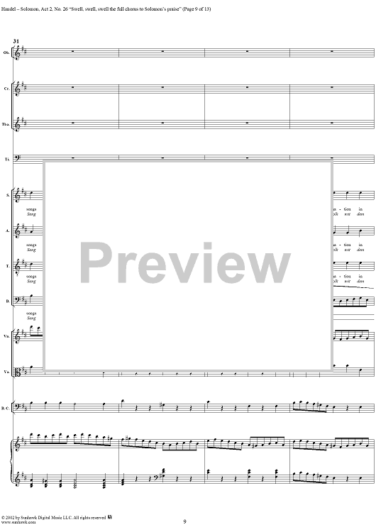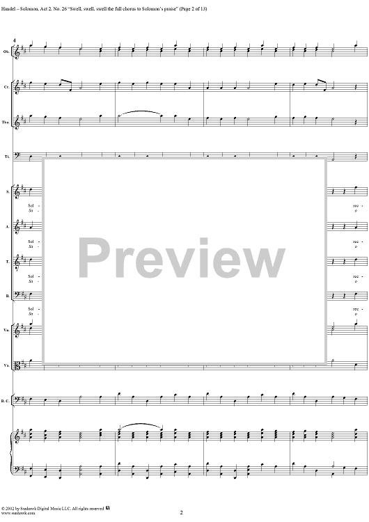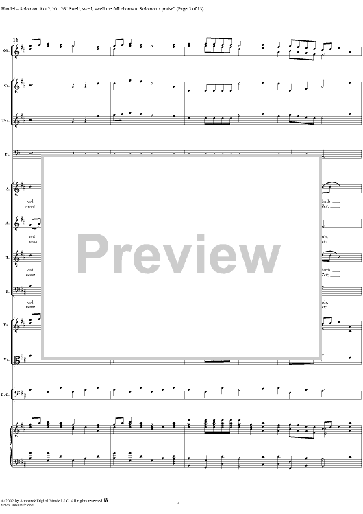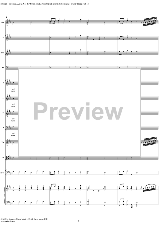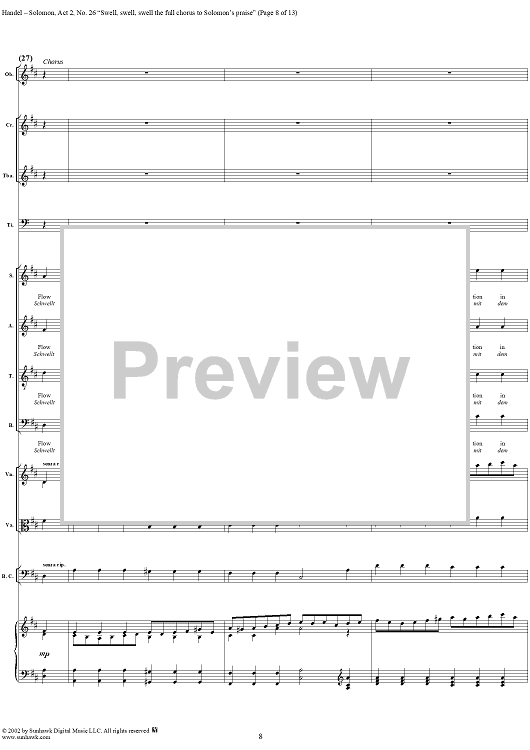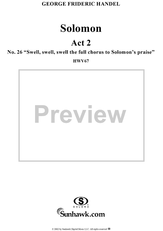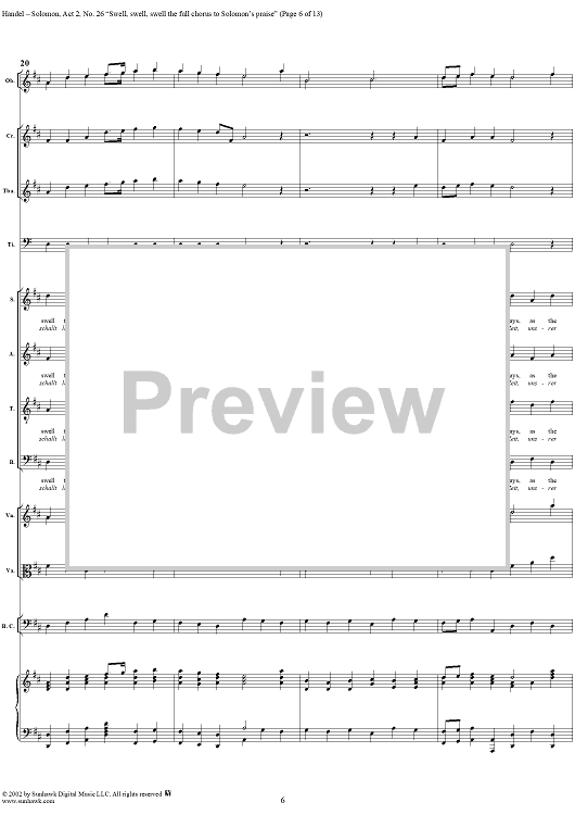 Digital Sheet Music for Swell, swell, swell the full chorus to Solomon's praise, No. 26 from Oratorio "Solomon", Act 2 (HWV67) by George Frideric Handel scored for Soli/SATB/Orchestra; id:290414
