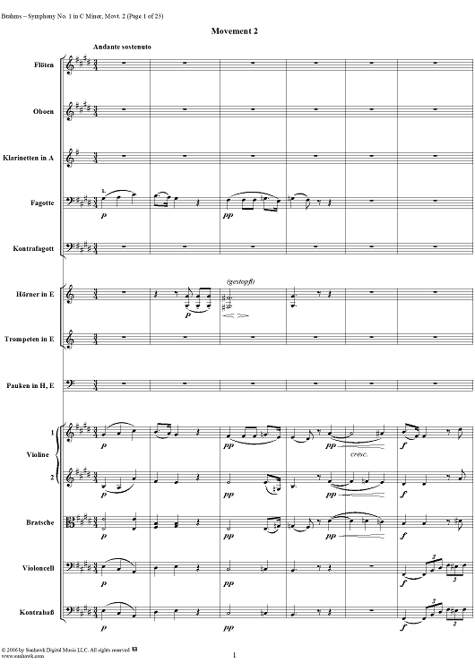 Digital Sheet Music for Symphony No. 1 in C Minor, Op. 68, Movement 2 - Full Score by Johannes Brahms scored for Orchestra; id:315377