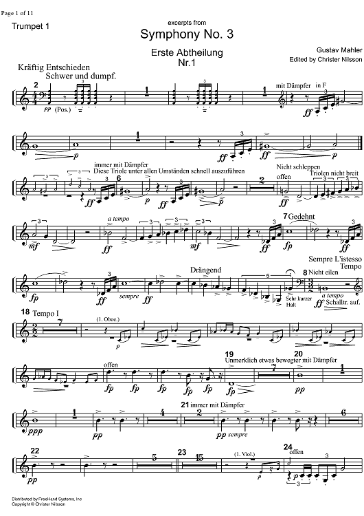 Digital Sheet Music for Symphony No. 3 exc. by , Gustav Mahler scored for Trumpet; id:328116