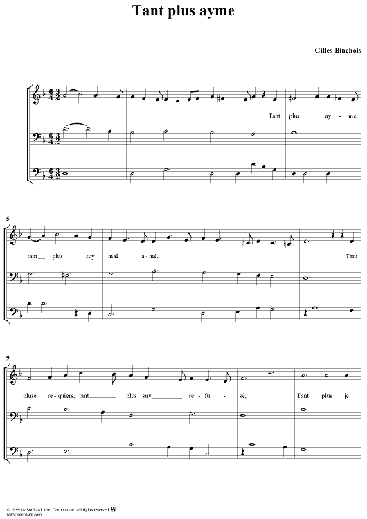 "Tant plus ayme" Sheet Music by Gilles Binchois