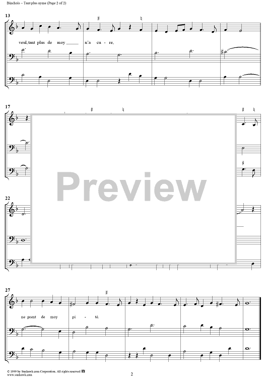 Digital Sheet Music for Tant plus ayme by , Gilles Binchois scored for Mixed Chorus; id:275038