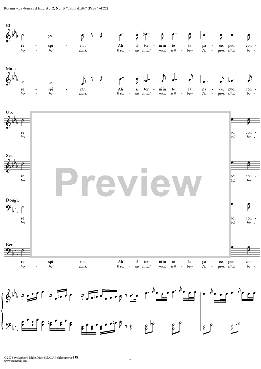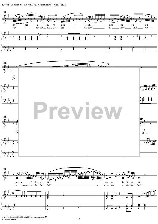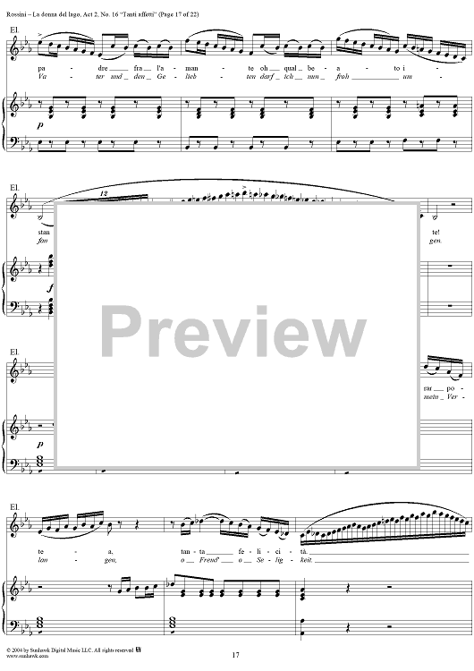 Digital Sheet Music for Tanti affetti: No. 16 from "La donna del lago", Act 2 - Score by Gioachino Rossini scored for Voice/Piano; id:303452