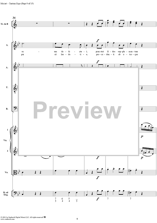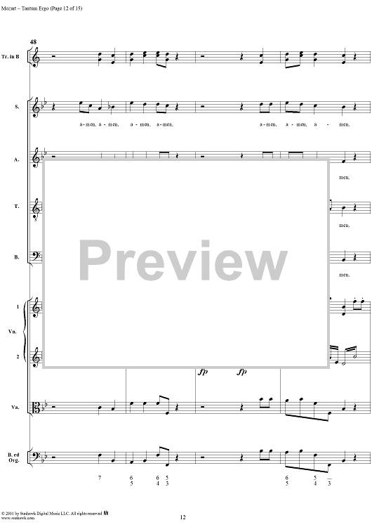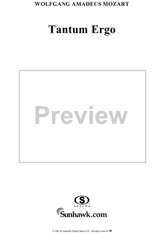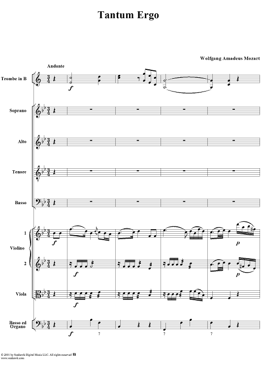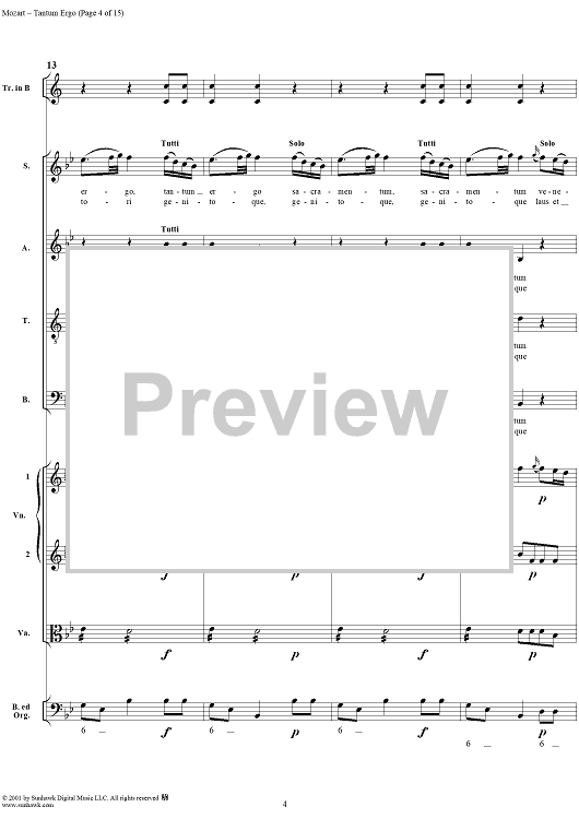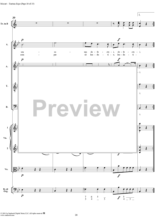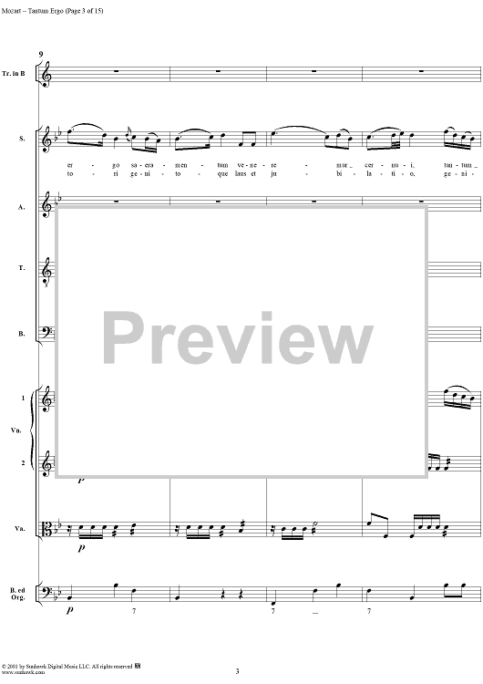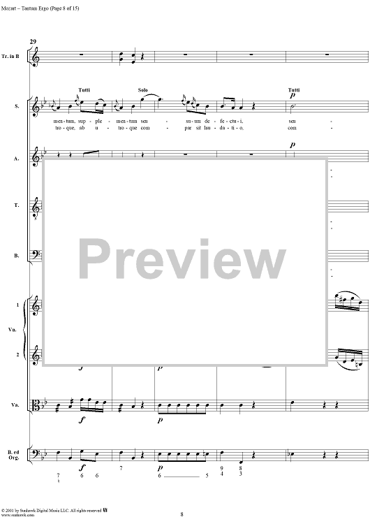 Digital Sheet Music for Tantum Ergo, K142 (spurious) by Wolfgang Amadeus Mozart scored for Four-part Mixed Chorus/Orchestra; id:262991