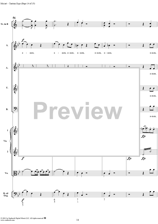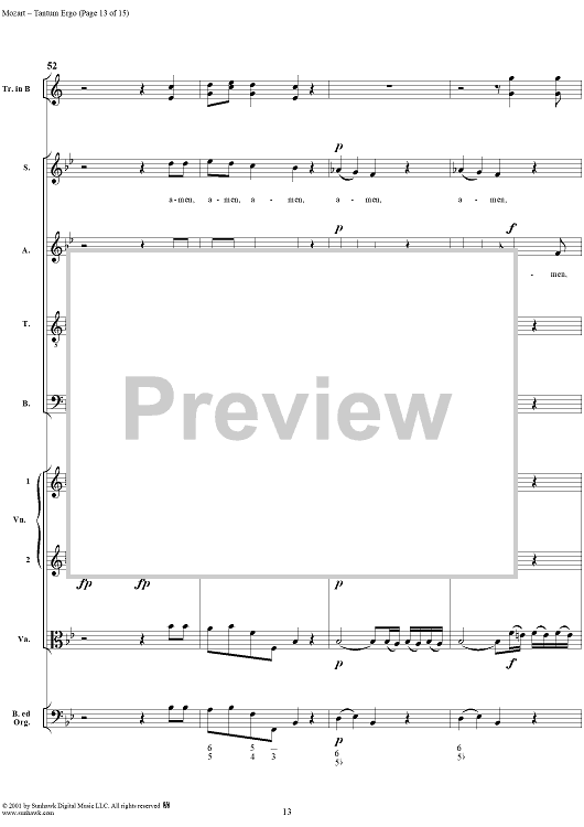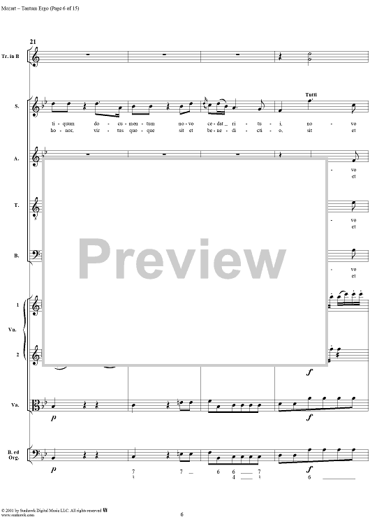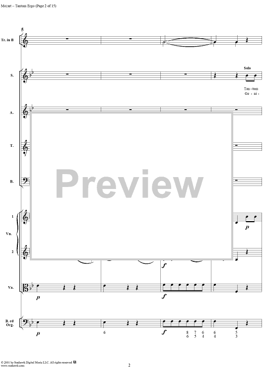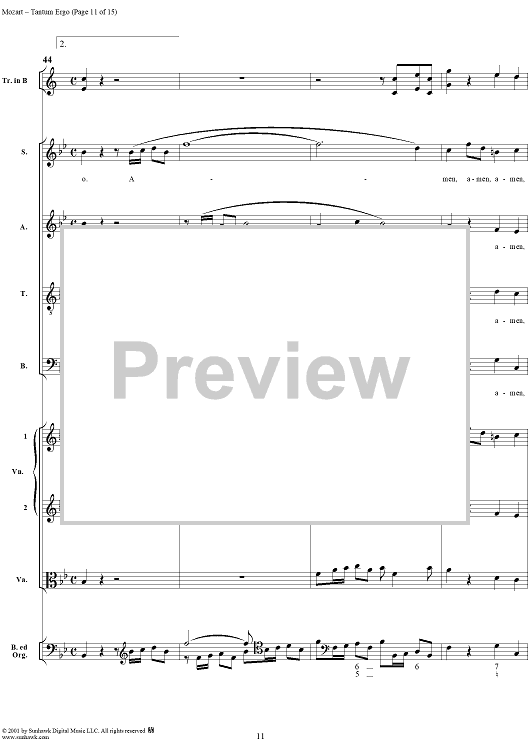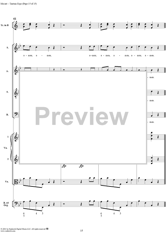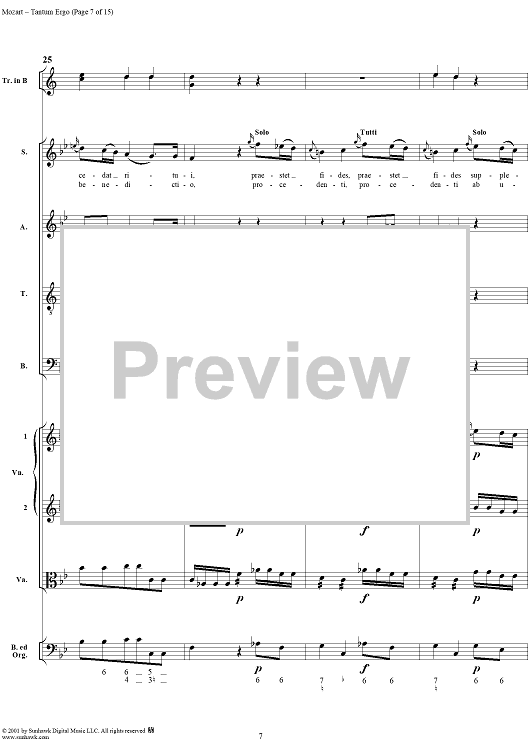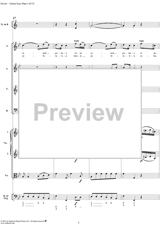Digital Sheet Music for Tantum Ergo, K142 (spurious) by Wolfgang Amadeus Mozart scored for Four-part Mixed Chorus/Orchestra; id:262991