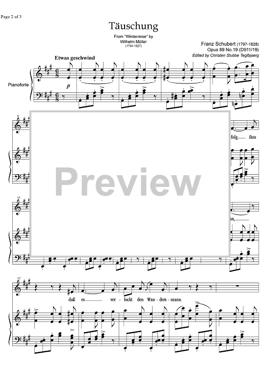 Digital Sheet Music for Täuschung Op.89 No.19 D911 by , Franz Schubert scored for Tenor/Piano; id:331943