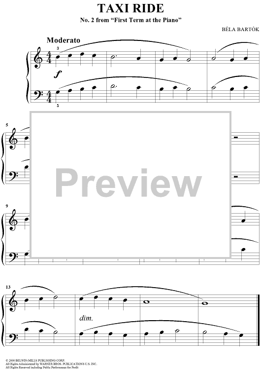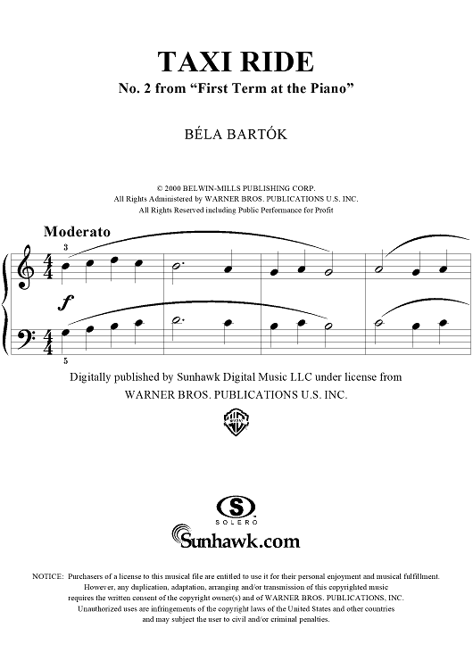 Digital Sheet Music for Taxi Ride by , Bela Bartok scored for Easy Piano; id:295803