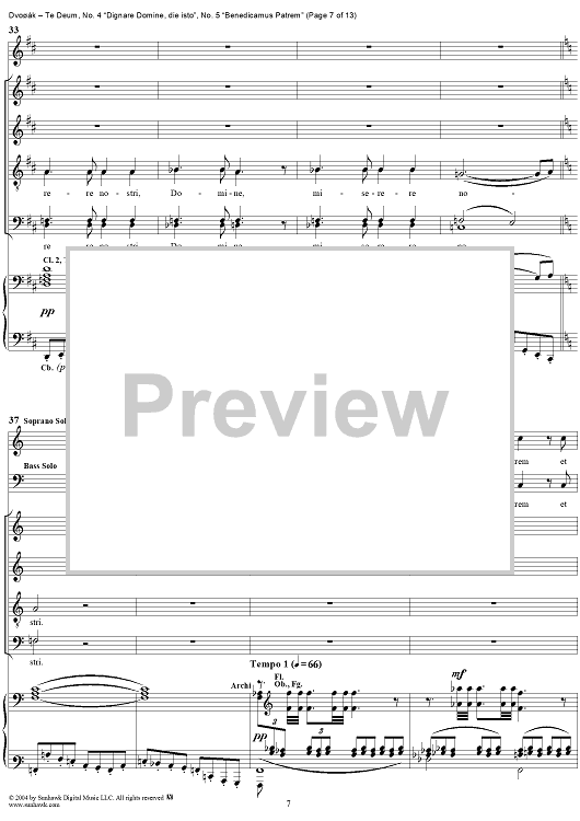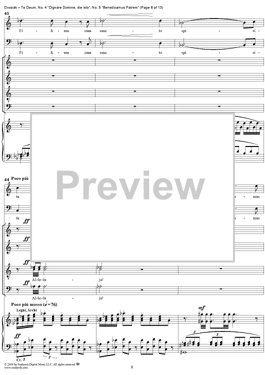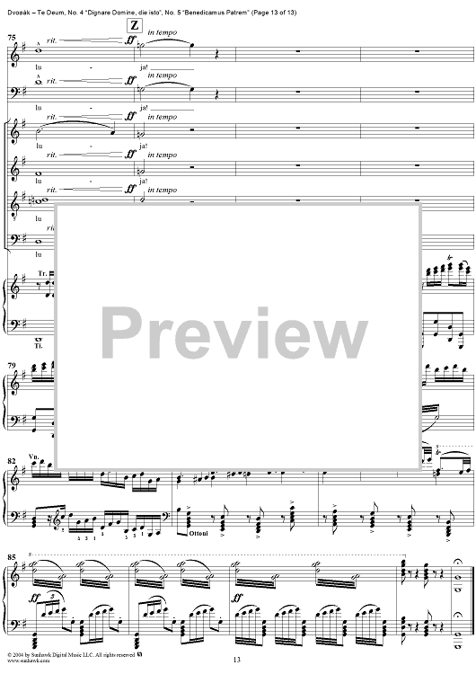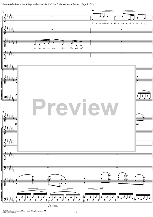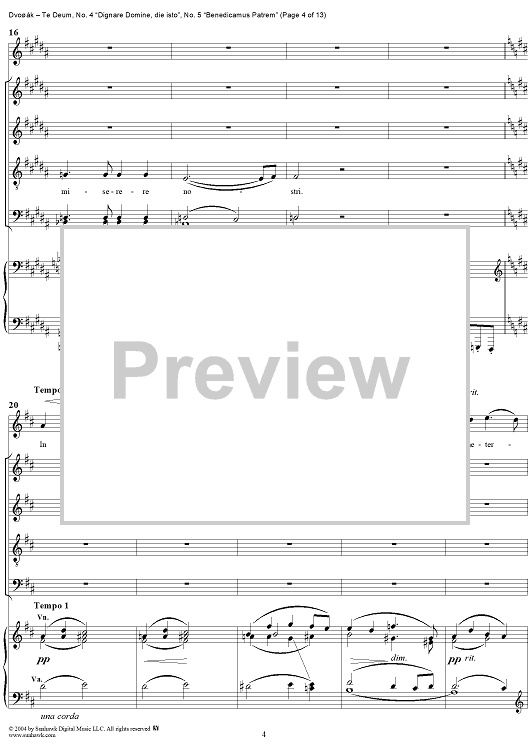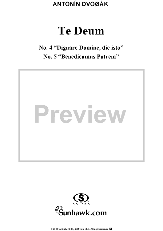 Digital Sheet Music for Te Deum, Op. 103: Nos. 4 and 5, Aeterna fac cum sanctis; Benedicamus Patrem by Antonín Dvorák scored for Four-part Mixed Chorus/Piano; id:306985