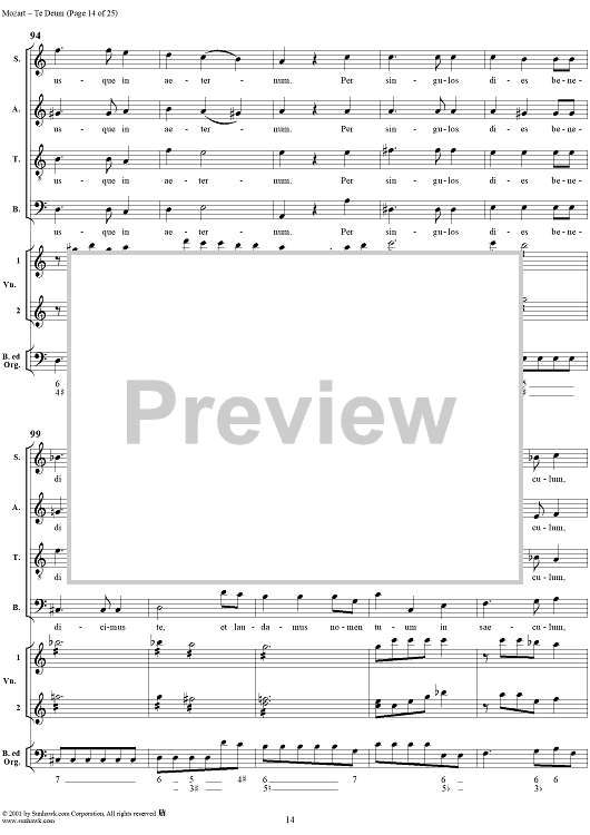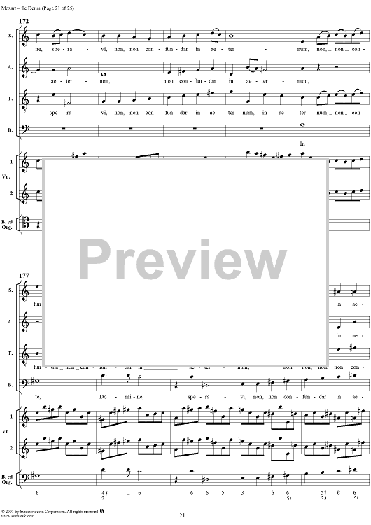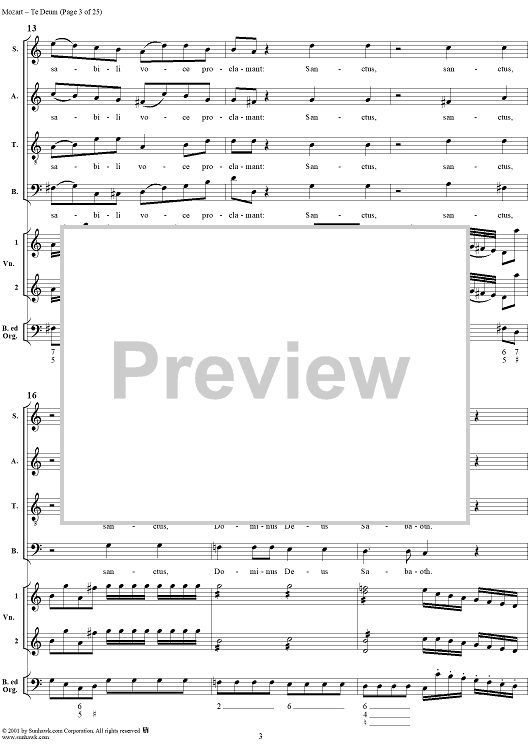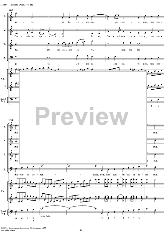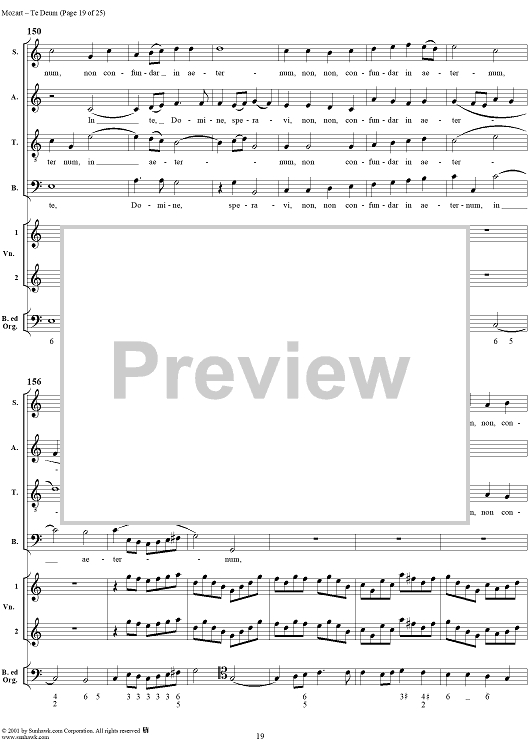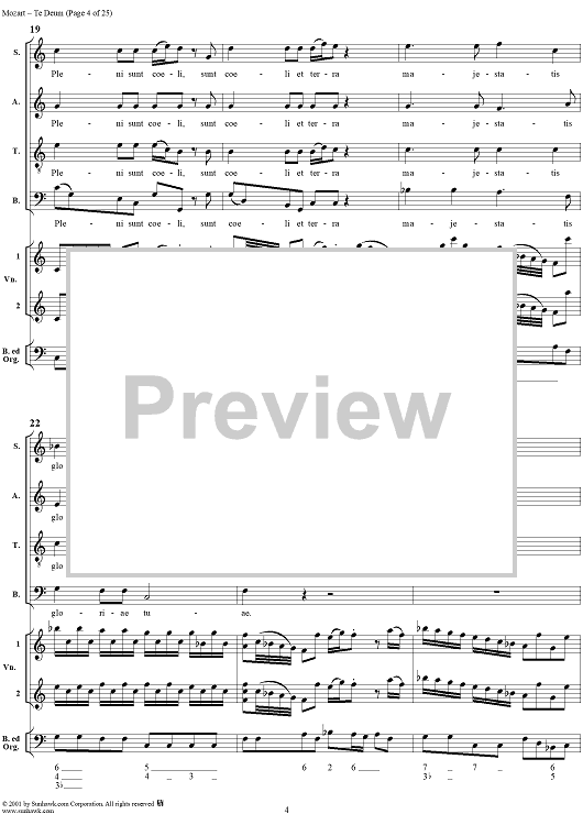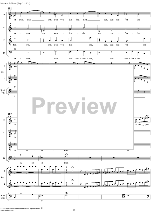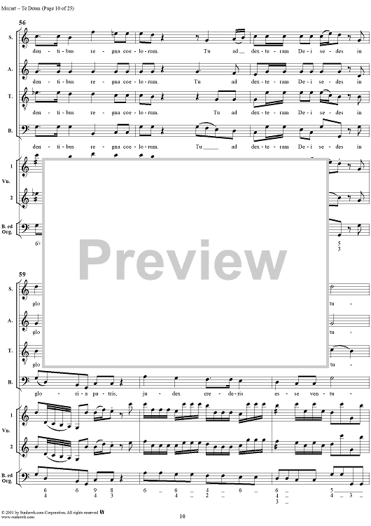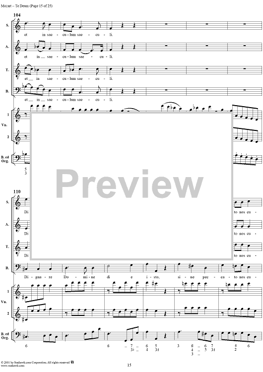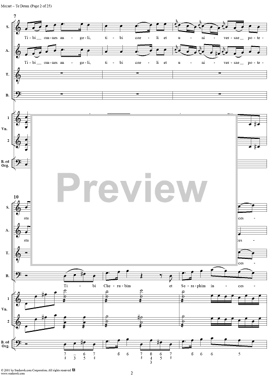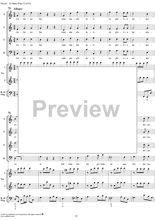 Digital Sheet Music for Te Deum by Wolfgang Amadeus Mozart scored for Four-part Mixed Chorus/Strings/Continuo; id:253512