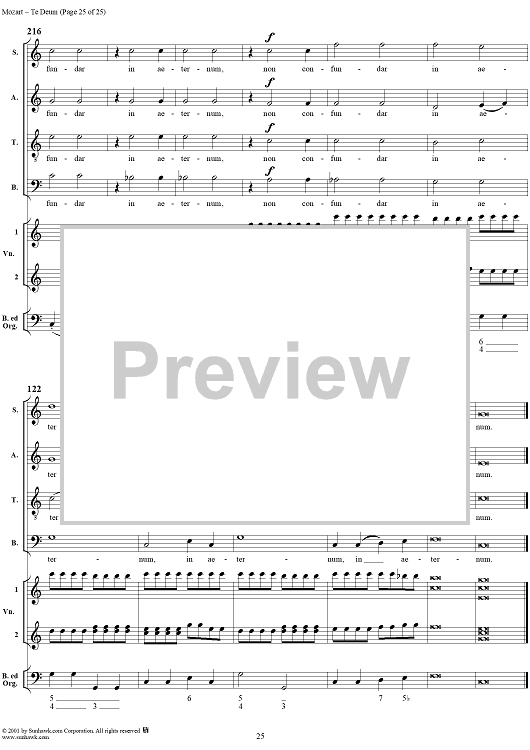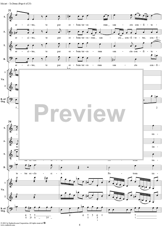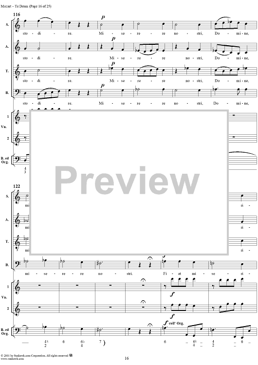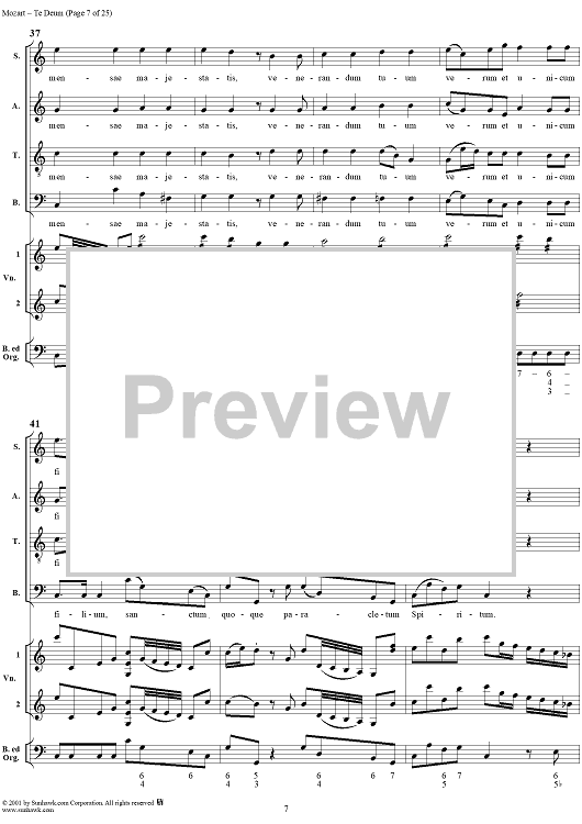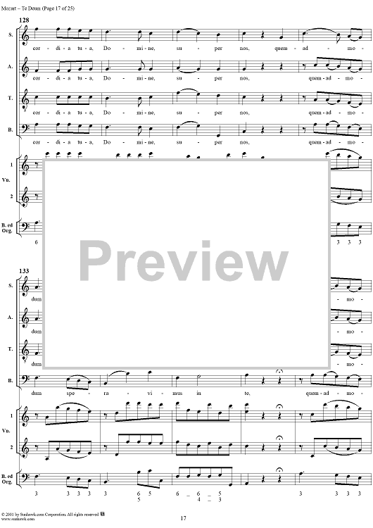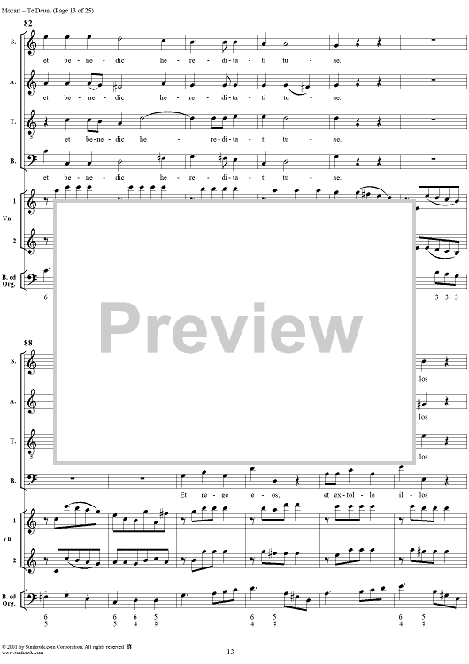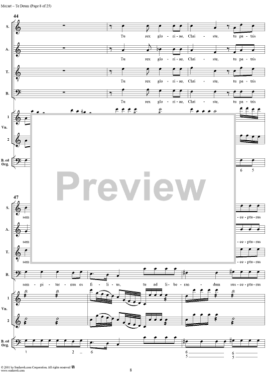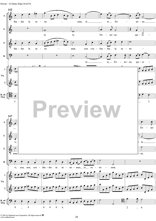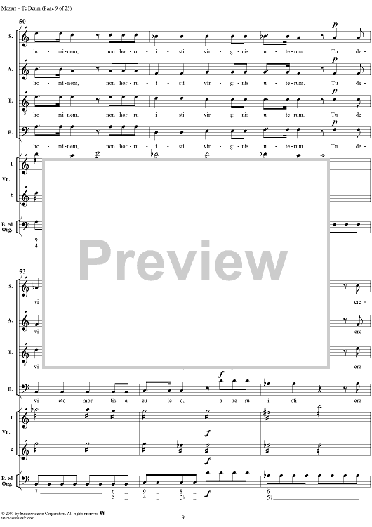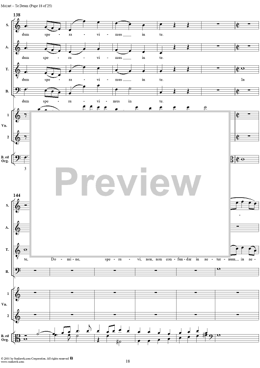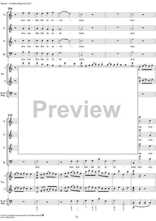 Digital Sheet Music for Te Deum by Wolfgang Amadeus Mozart scored for Four-part Mixed Chorus/Strings/Continuo; id:253512