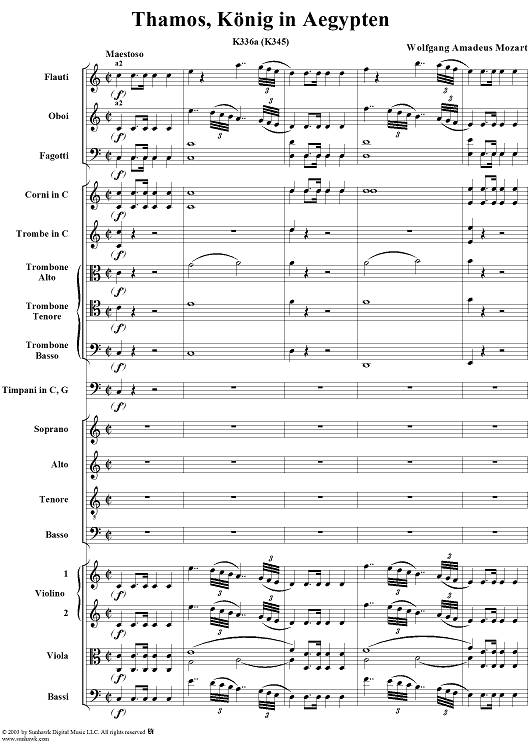 Digital Sheet Music for Thamos, König in Aegypten, K336A (K345) by Wolfgang Amadeus Mozart scored for Four-part Mixed Chorus/Orchestra; id:266669