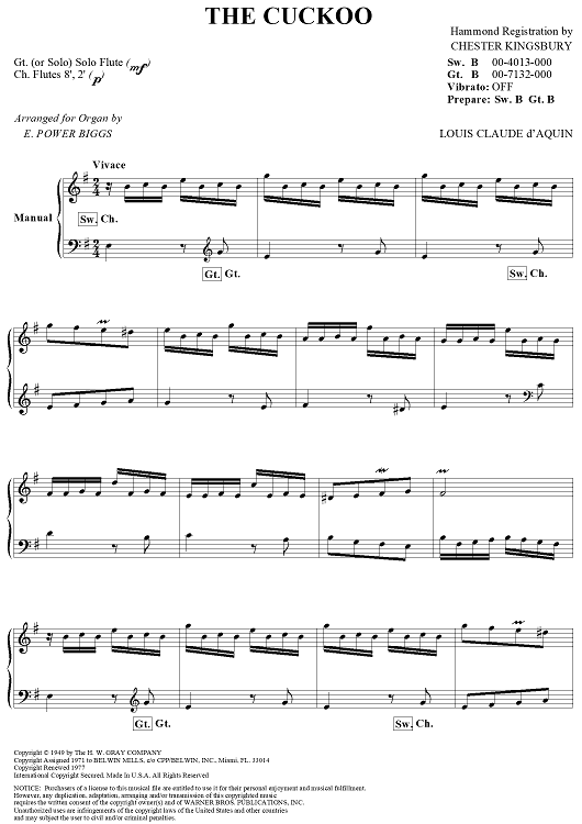 "The Cuckoo" Sheet Music by Louis-Claude Daquin