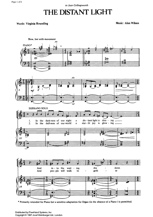 Digital Sheet Music for The Distant Light by Alan Wilson scored for Choir/Piano; id:337495