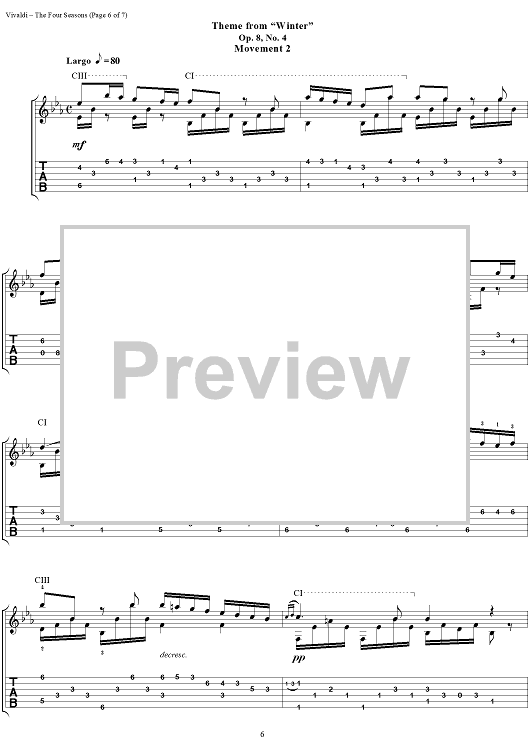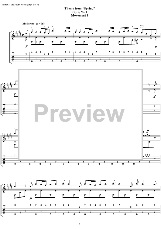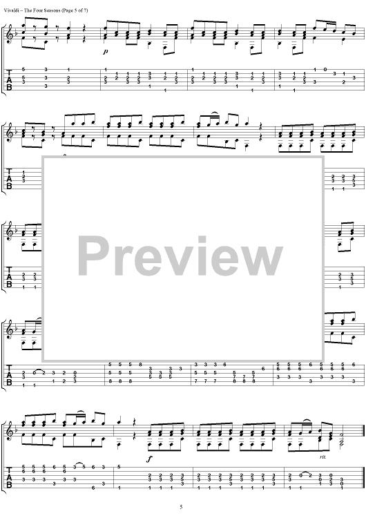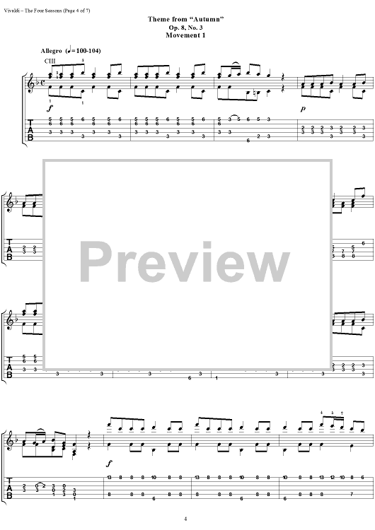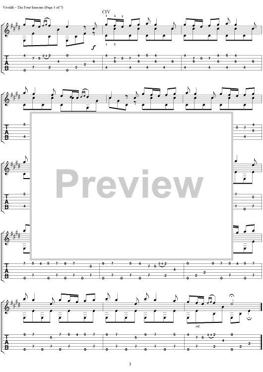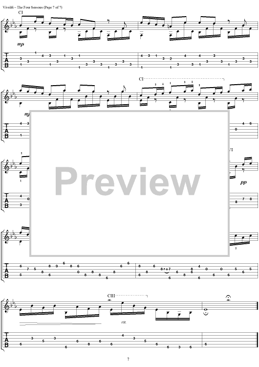 Digital Sheet Music for The Four Seasons (A Suite of Themes) by Antonio Vivaldi, Alexander Gluklikh scored for Guitar Tab; id:283592