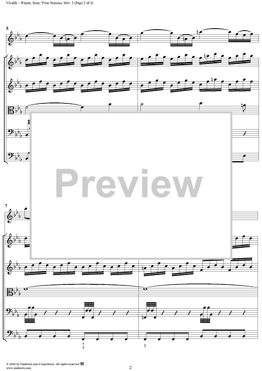 Digital Sheet Music for The Four Seasons, No. 4: Winter - Movement 2 by Antonio Vivaldi scored for Violin and String Orchestra; id:114277
