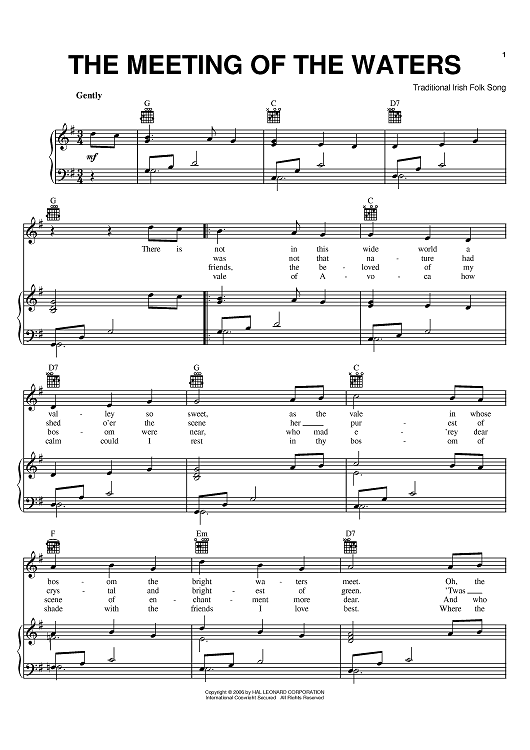 Digital Sheet Music for The Meeting Of The Waters by scored for Piano/Vocal/Chords; id:393968