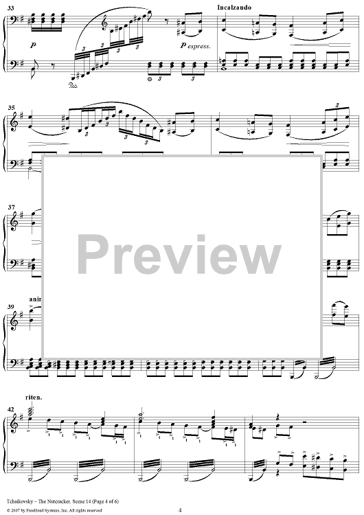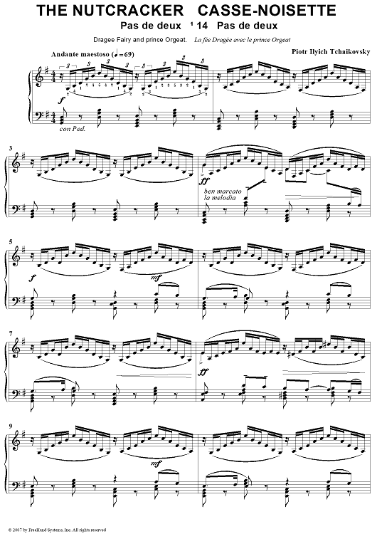 Digital Sheet Music for The Nutcracker. Scene No. 14. Pas de deux by Peter Ilyich Tchaikovsky scored for Piano Solo; id:364630