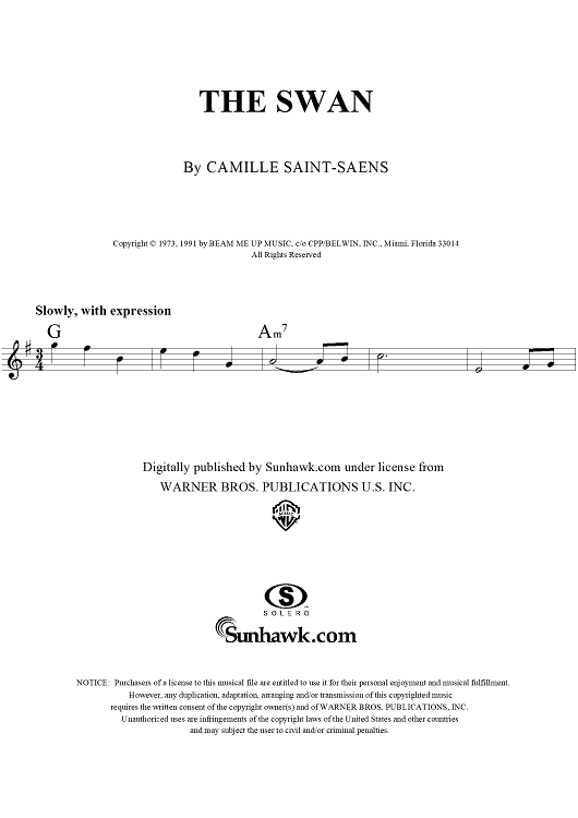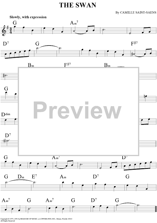 Digital Sheet Music for The Swan by Camille Saint-Saëns scored for Lead Sheet; id:256623