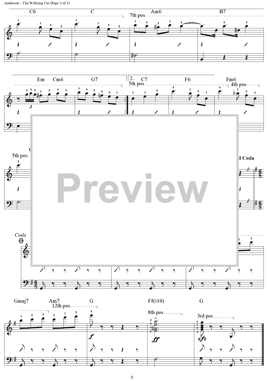 Digital Sheet Music for The Waltzing Cat by Leroy Anderson, Bert Weedon scored for Guitars/Bass; id:428415