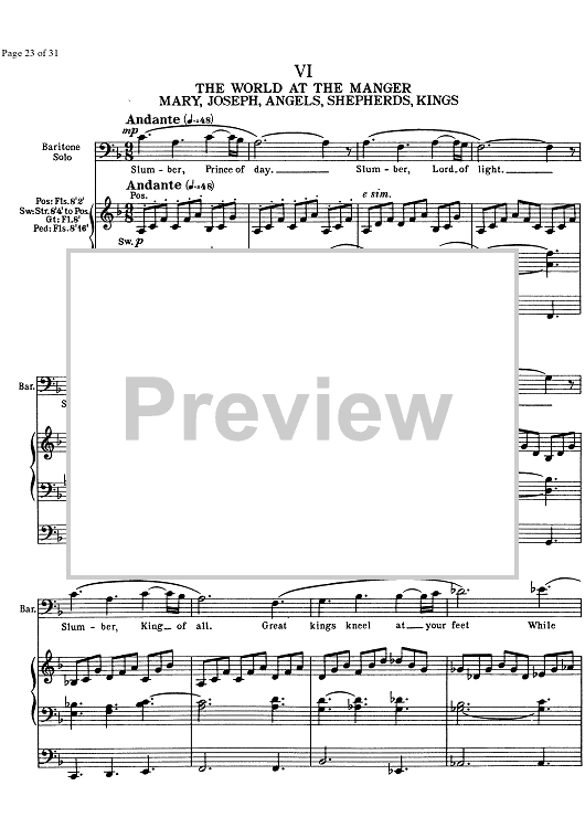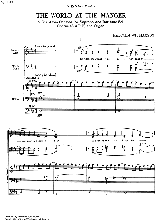 Digital Sheet Music for The World at the Manger by , Malcolm Williamson scored for Soprano/Baritone/Choir/Organ; id:336101