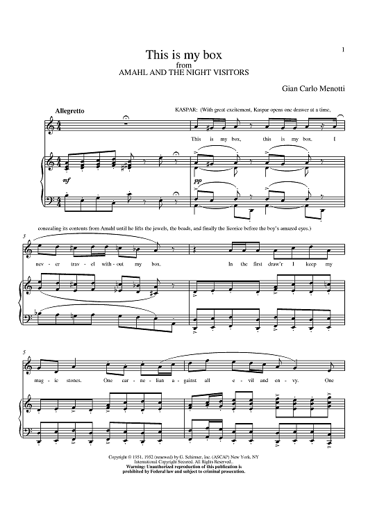 "This Is My Box" Sheet Music by Gian Carlo Menotti