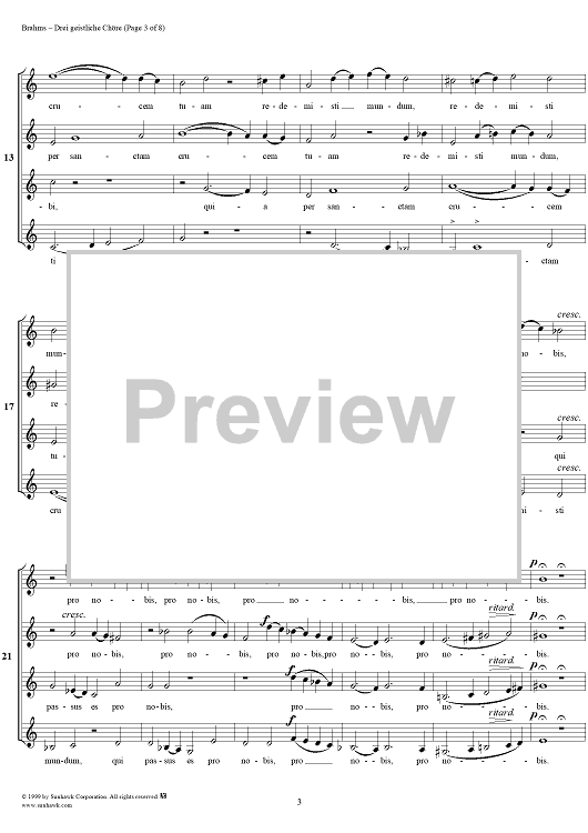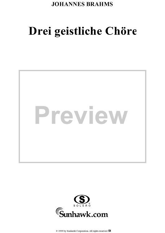 Digital Sheet Music for Three Sacred Choruses, Op. 37 by Johannes Brahms scored for Four-part Mixed Chorus; id:273839