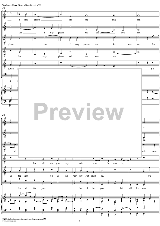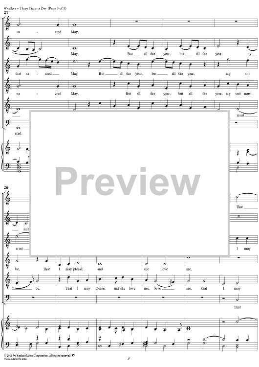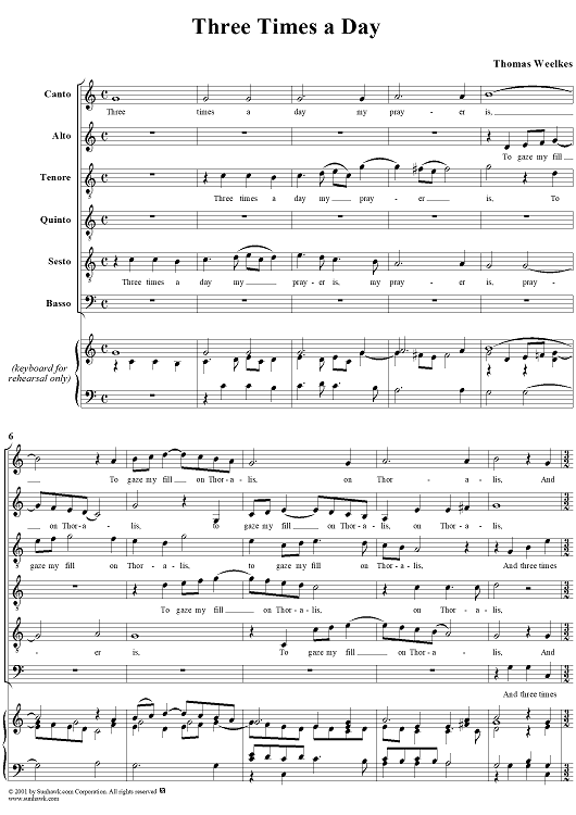 Digital Sheet Music for Three Times a Day by Thomas Weelkes scored for Six-part Mixed Chorus; id:262035