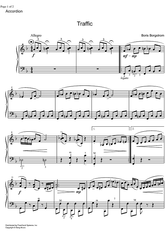 Digital Sheet Music for Traffic by , Boris Borgstrom scored for Accordion; id:325774