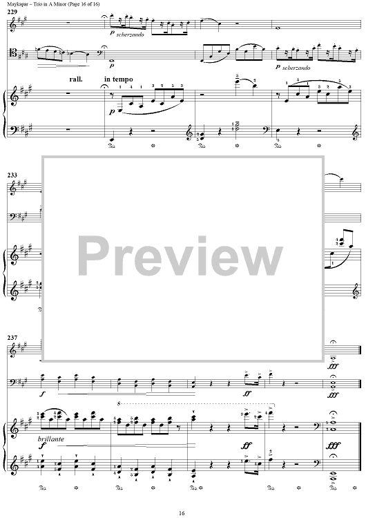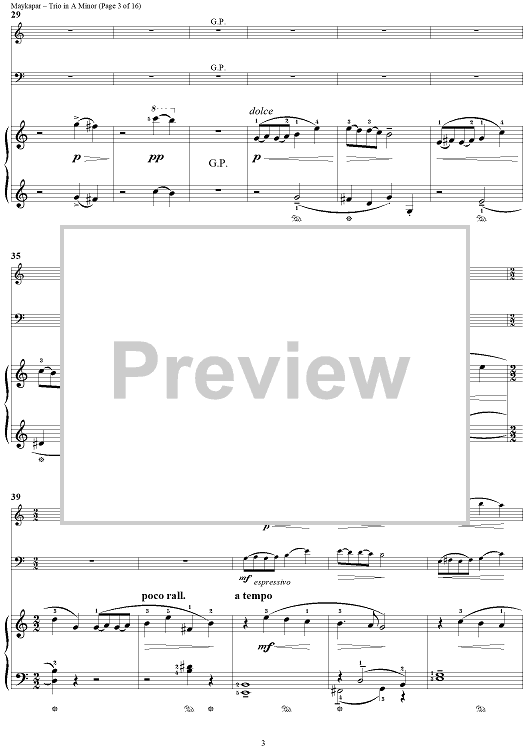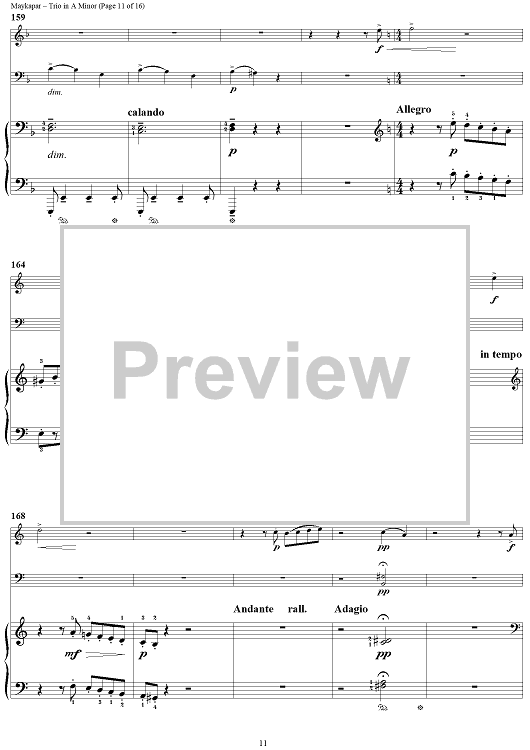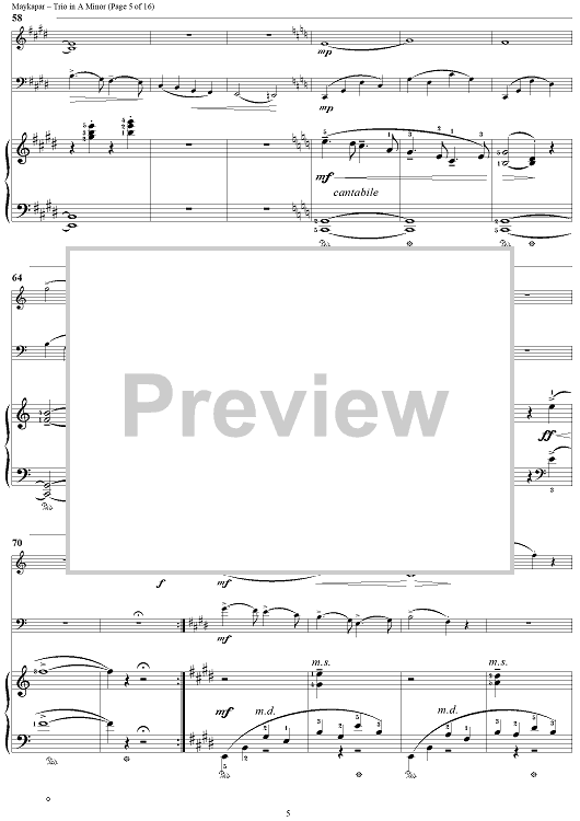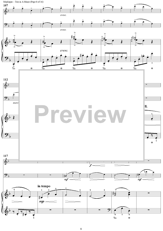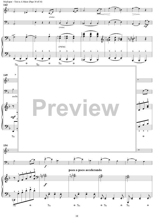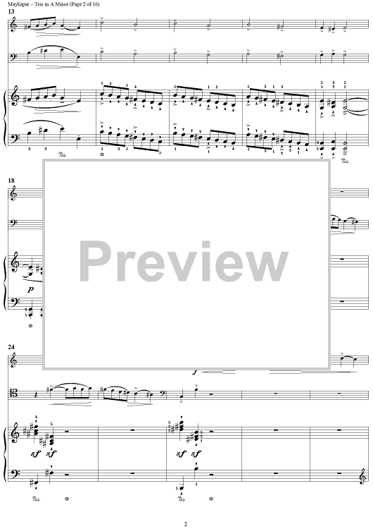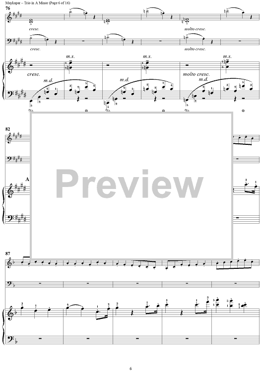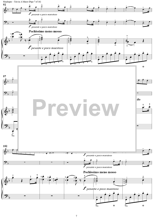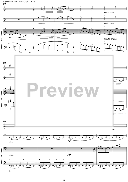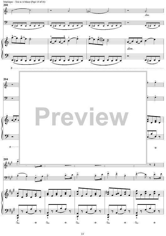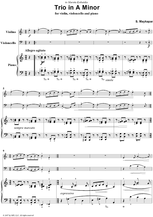Digital Sheet Music for Trio in A Minor for violin, violoncello and piano - Piano Score by Samuel Maykapar scored for Piano Trio; id:366825