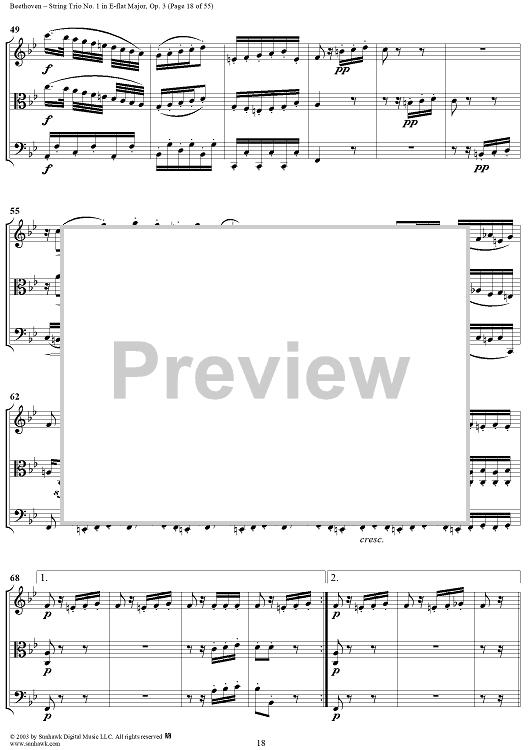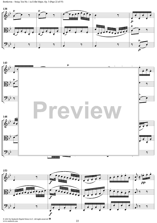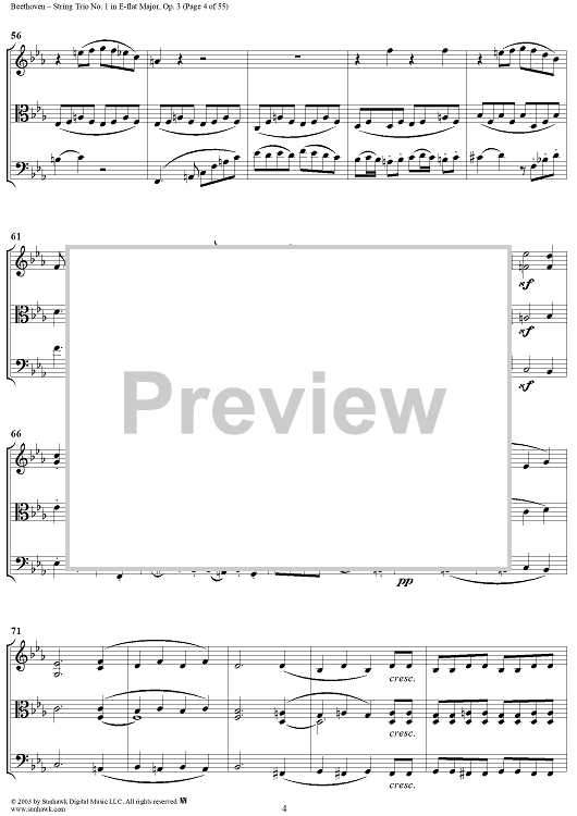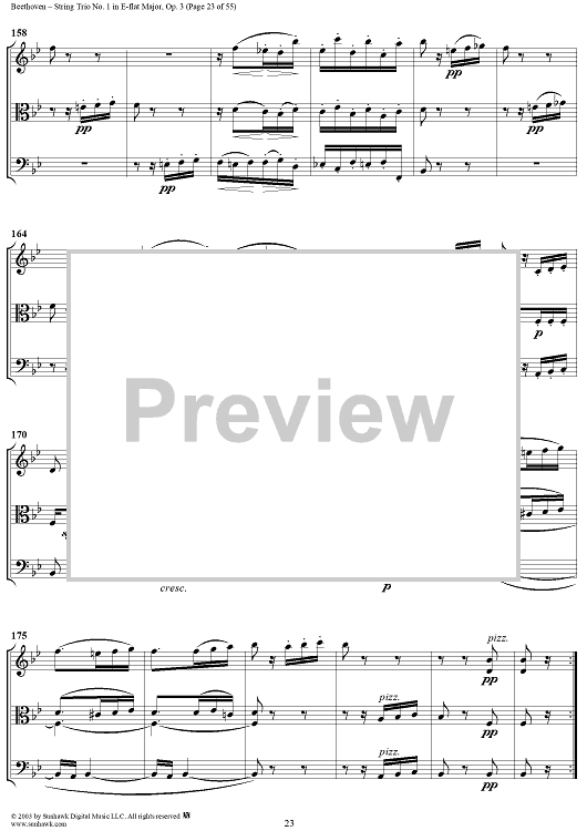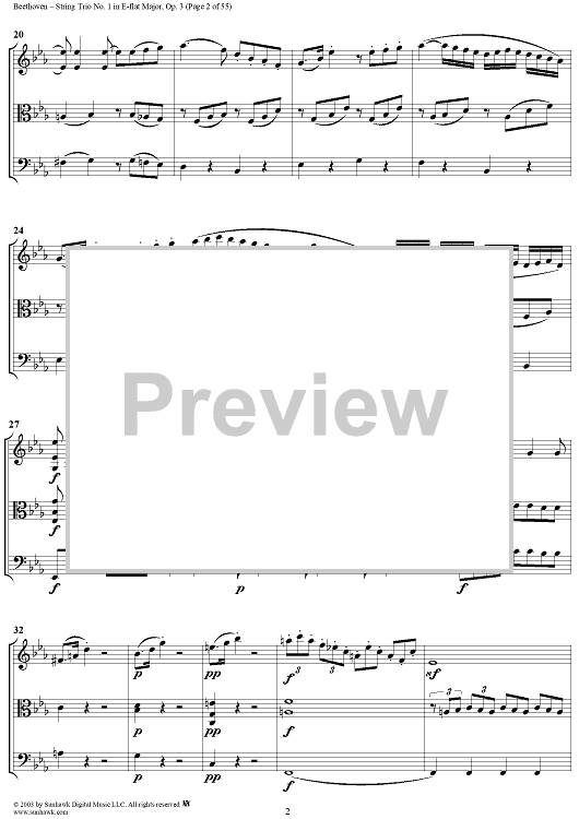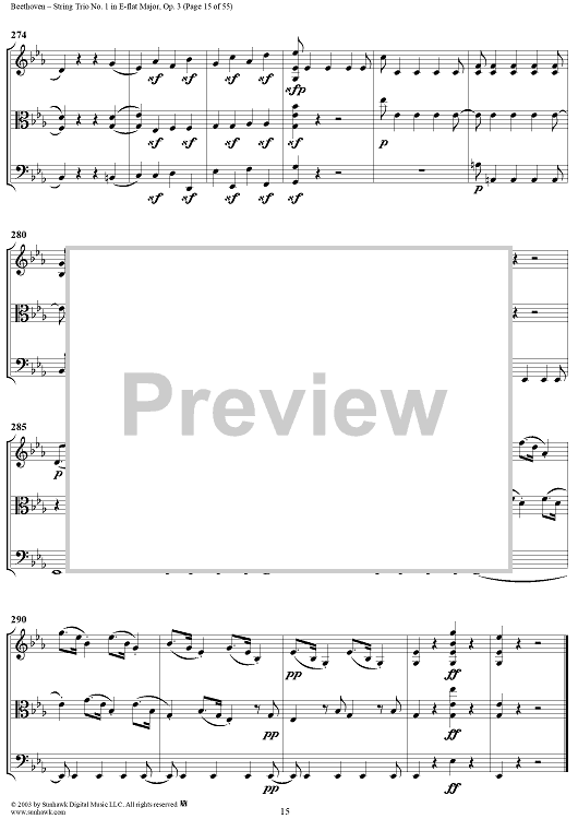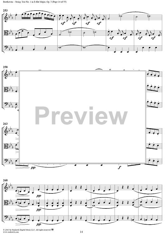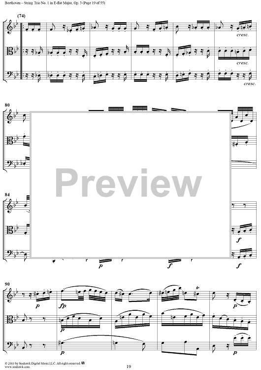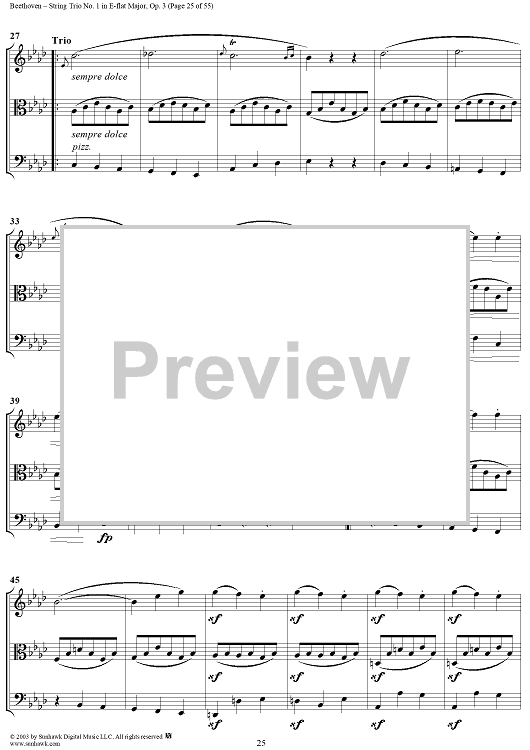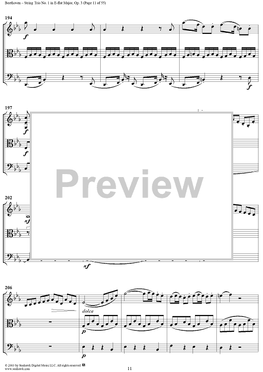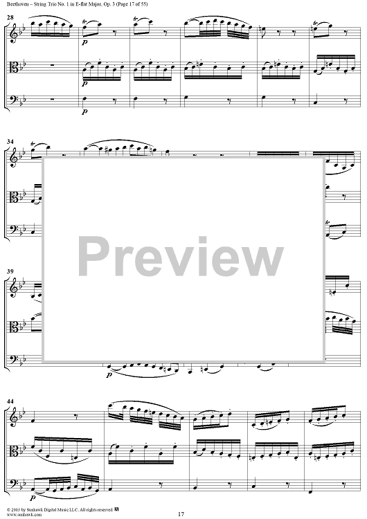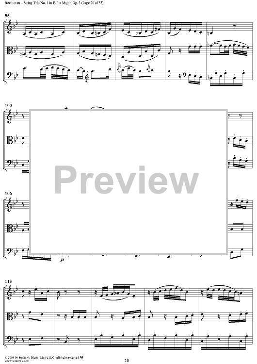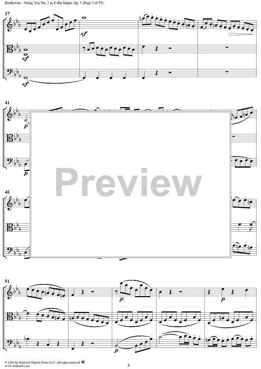 Digital Sheet Music for Trio in E-flat major, Op. 3 by Ludwig van Beethoven scored for String Trio; id:275180