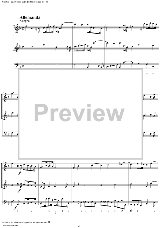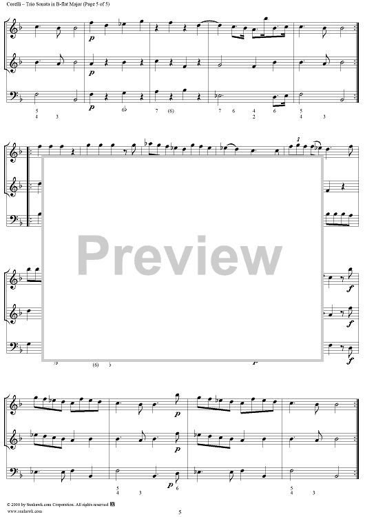 Digital Sheet Music for Trio Sonata in B-flat major, op. 2, no. 5 by Arcangelo Corelli scored for String Trio; id:186192