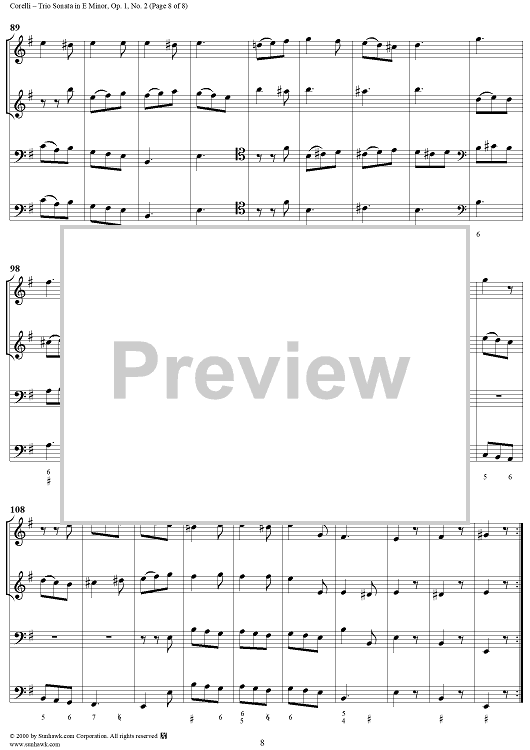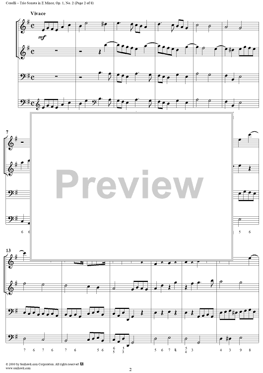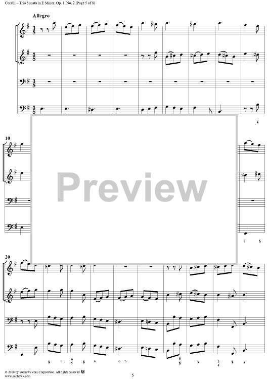 Digital Sheet Music for Trio Sonata in E Minor, op. 1, no. 2 by Arcangelo Corelli scored for Trio Sonata; id:240815
