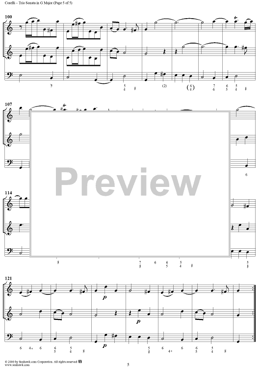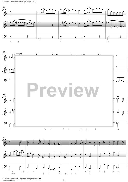 Digital Sheet Music for Trio Sonata in G Major, op. 2, no. 12 by Arcangelo Corelli scored for Trio Sonata; id:240814