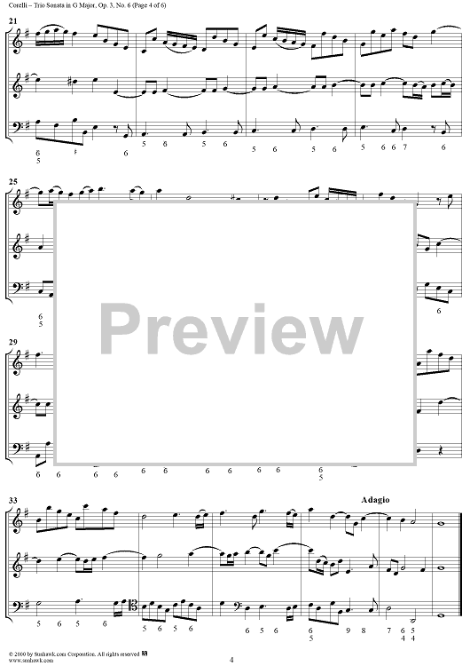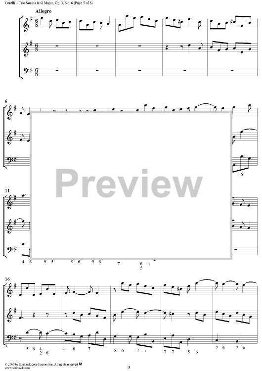 Digital Sheet Music for Trio Sonata in G Major, Op. 3, No. 6 - Score by Arcangelo Corelli scored for Trio Sonata; id:241193