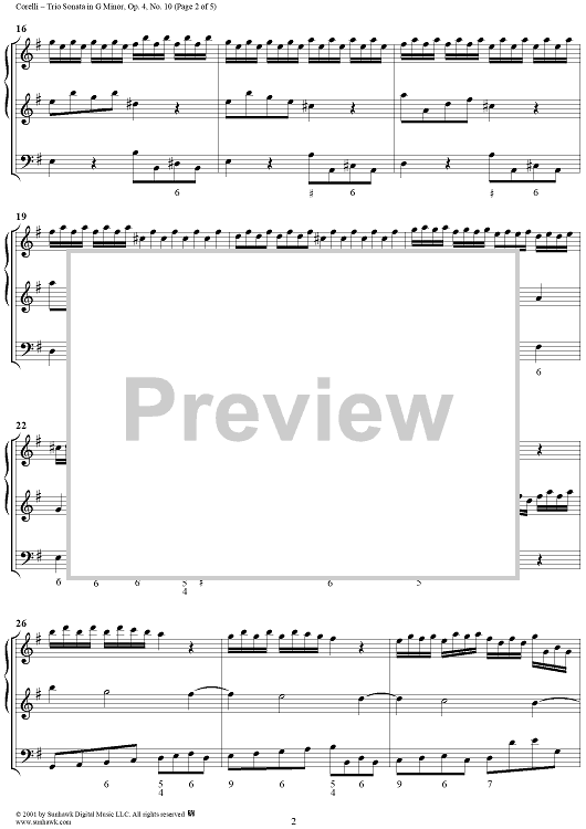 Digital Sheet Music for Trio Sonata in G Major - Op. 4, No. 10 - Score by Arcangelo Corelli scored for Trio Sonata; id:272614
