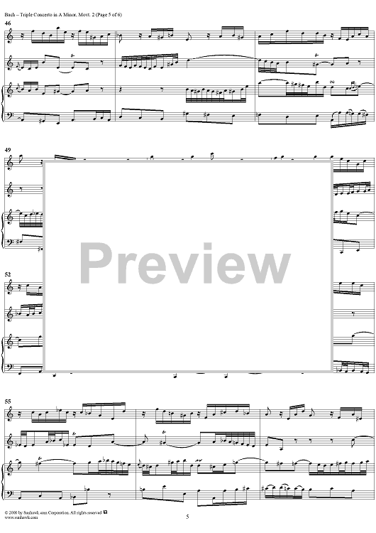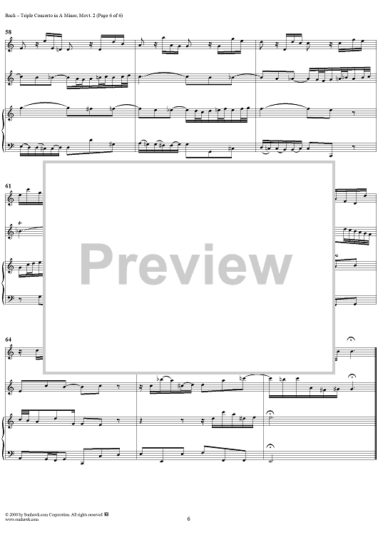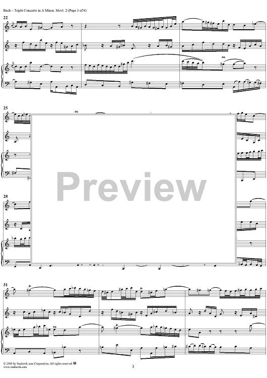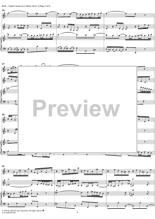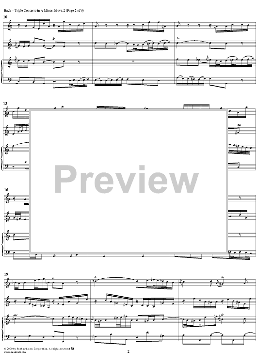 Digital Sheet Music for Triple Concerto in A Minor, Movement 2 (BWV1044) - Score by Johann Sebastian Bach scored for Flute/Violin/Piano/Strings; id:236710