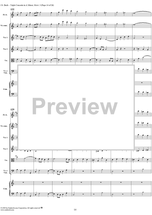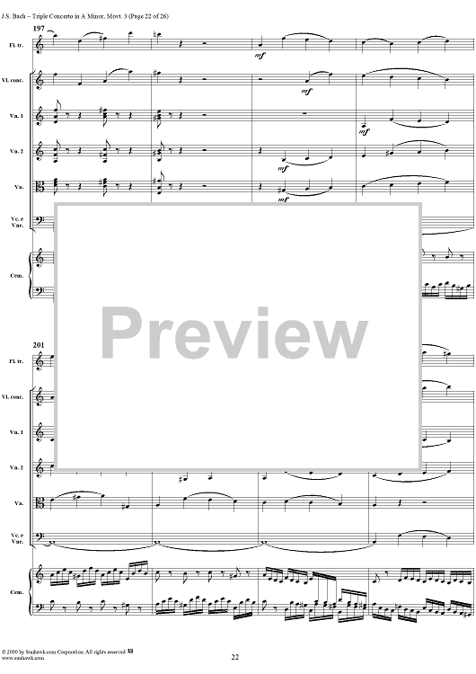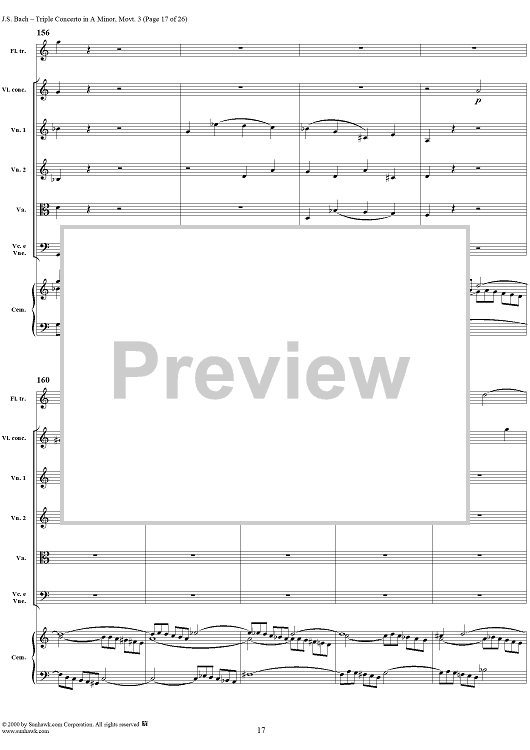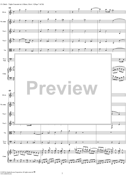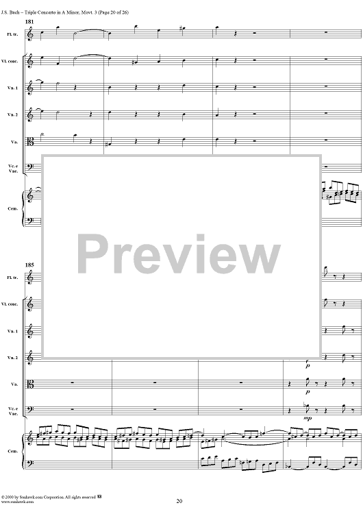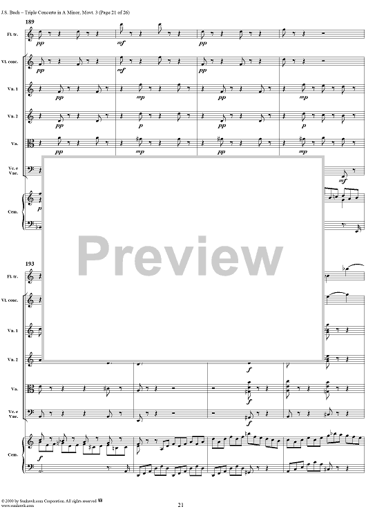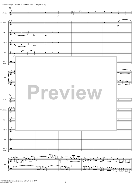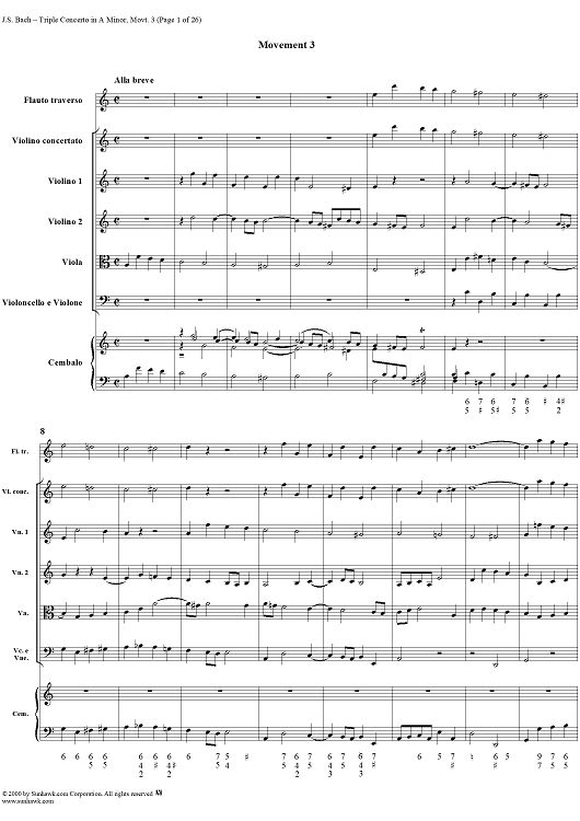Digital Sheet Music for Triple Concerto in A Minor, Movement 3 (BWV1044) - Score by Johann Sebastian Bach scored for Flute/Violin/Piano/Strings; id:236711