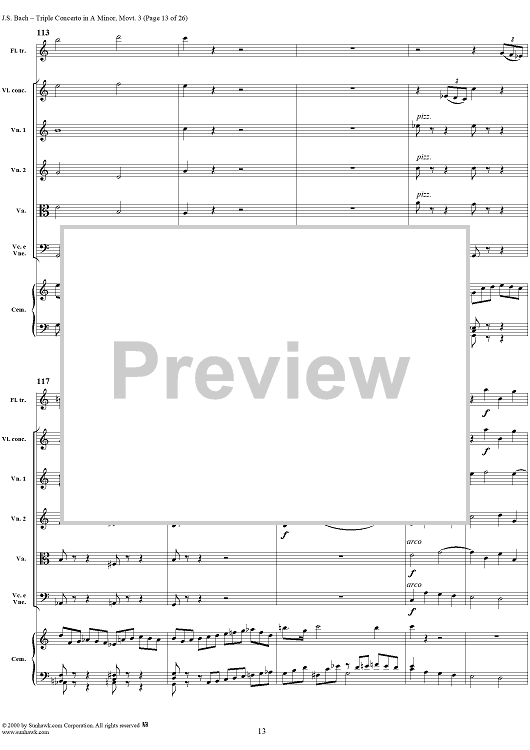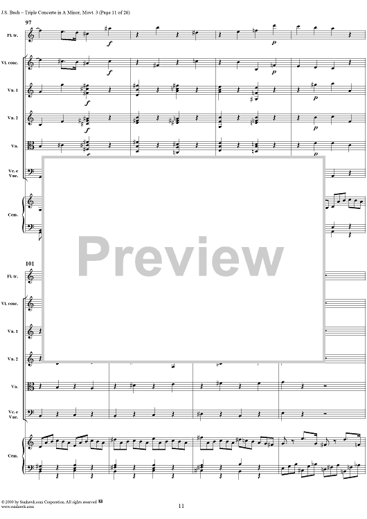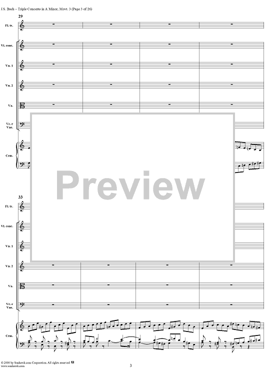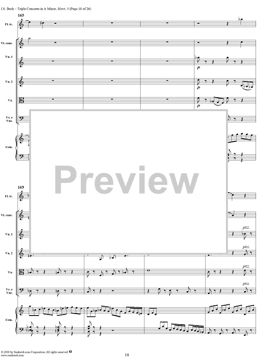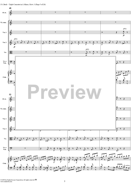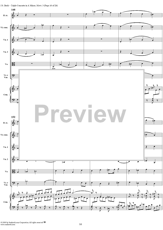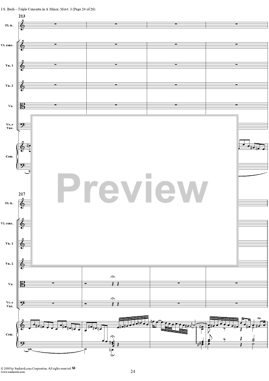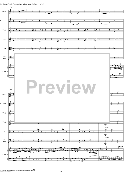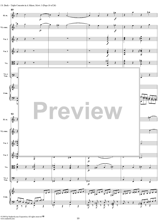 Digital Sheet Music for Triple Concerto in A Minor, Movement 3 (BWV1044) - Score by Johann Sebastian Bach scored for Flute/Violin/Piano/Strings; id:236711