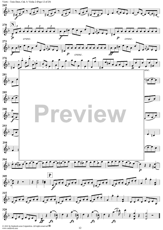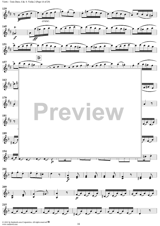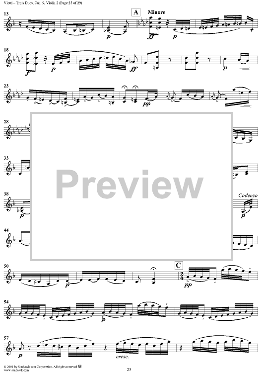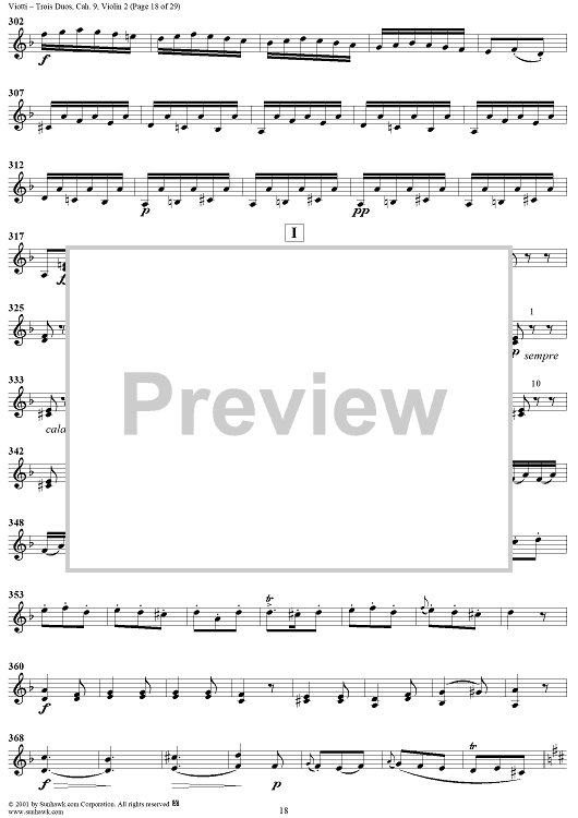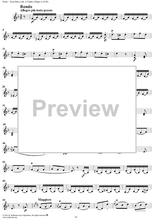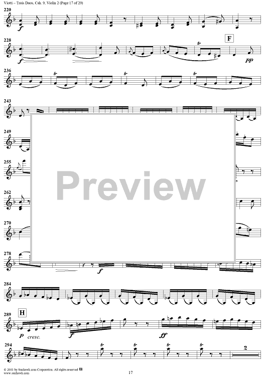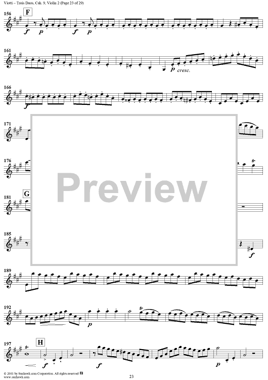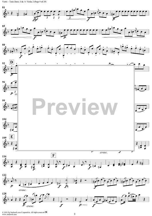 Digital Sheet Music for Trois Duos, Cah. 9 - Violin 2 by Giovanni Battista Viotti scored for Two Violins; id:271567