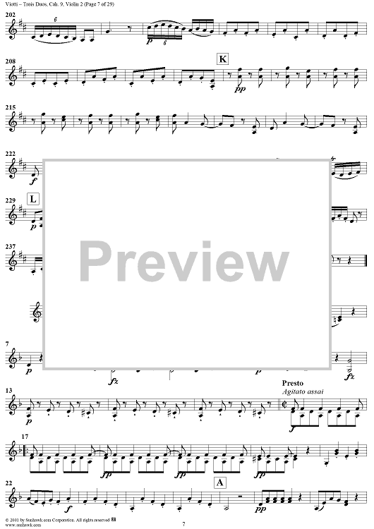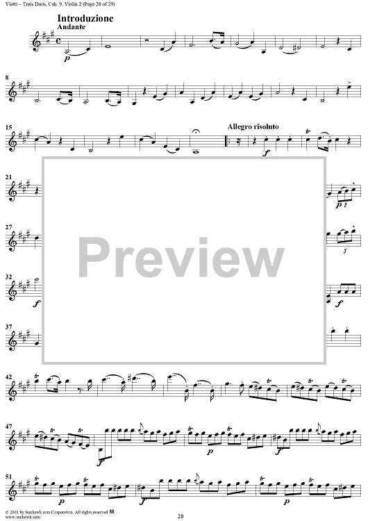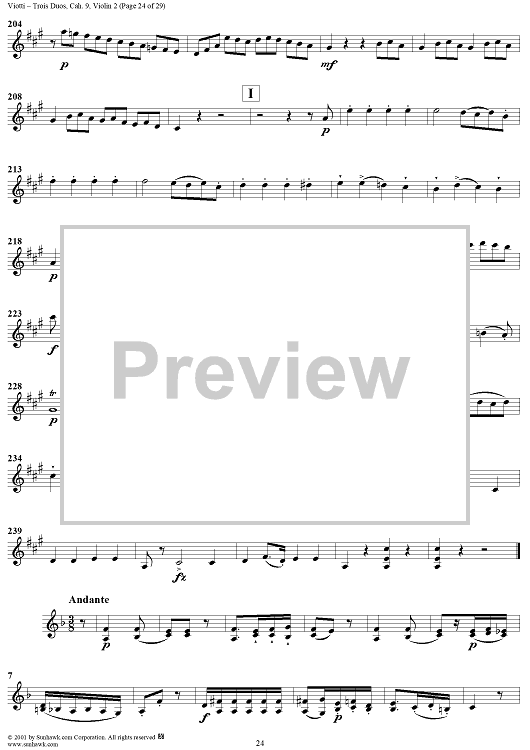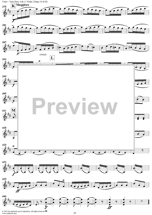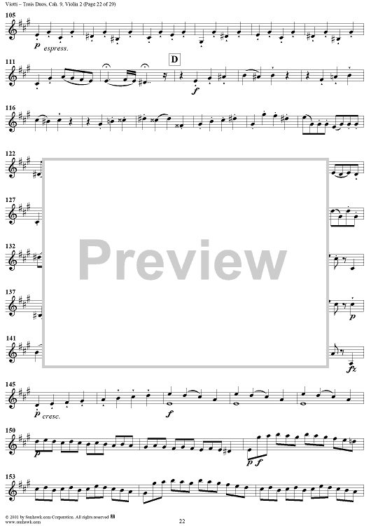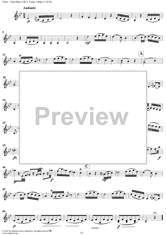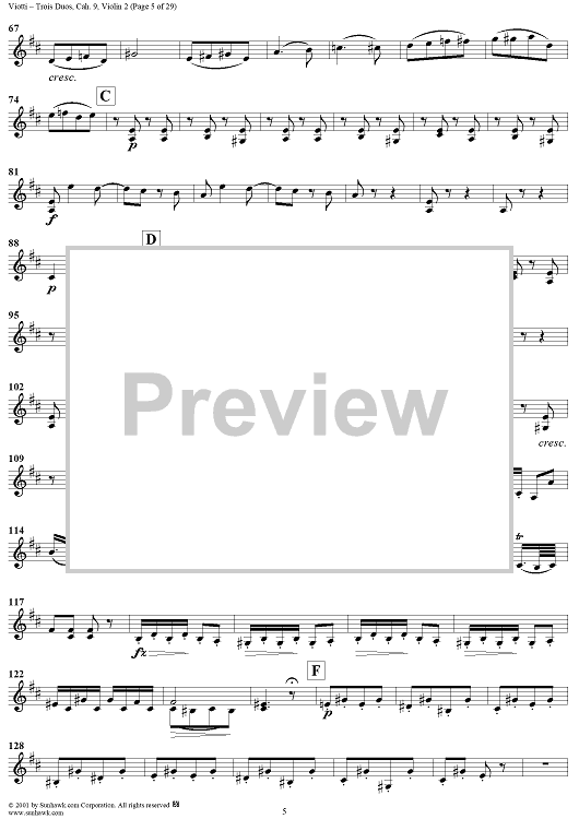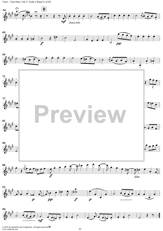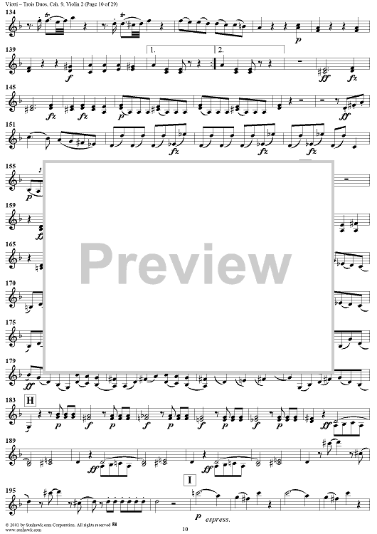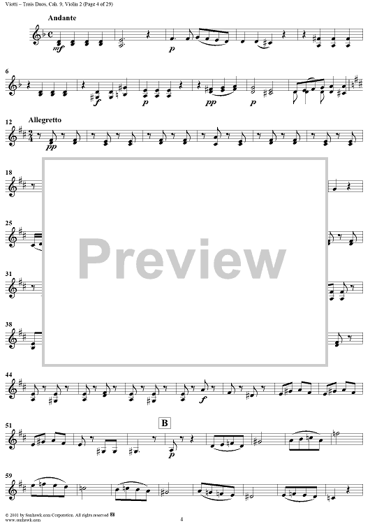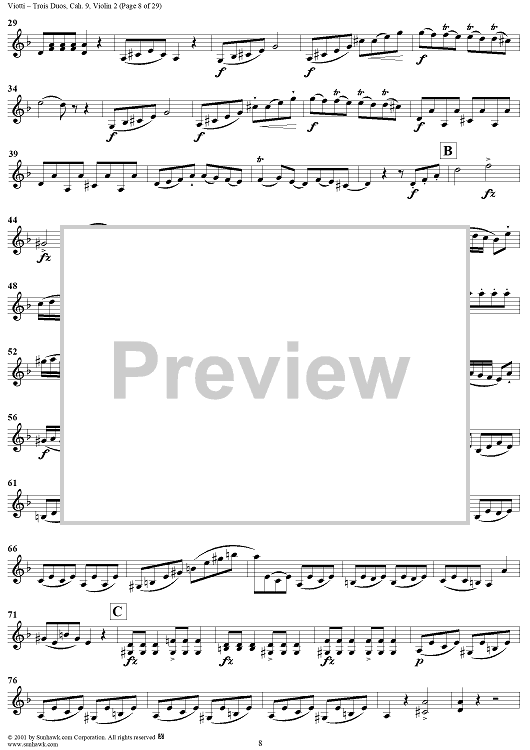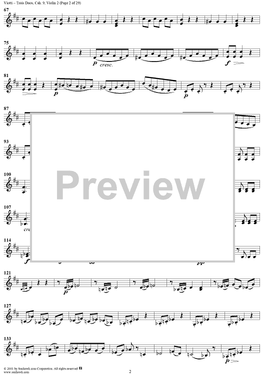 "Trois Duos, Cah. 9 - Violin 2" Sheet Music by Giovanni Battista Viotti