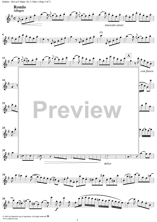 Digital Sheet Music for Trois Duos Concertants, Op. 10, No. 3 - Flute 1 by Friedrich Kuhlau scored for Two Flutes; id:235498