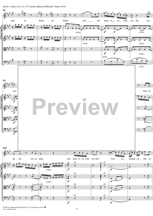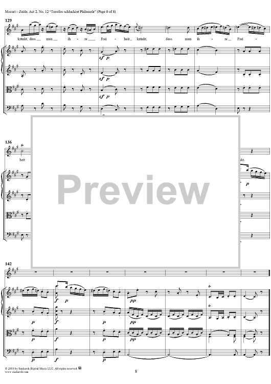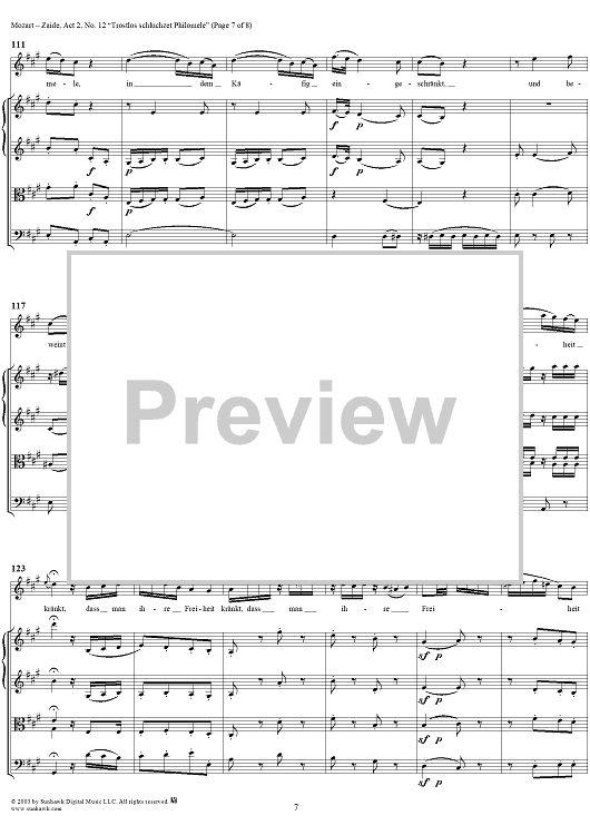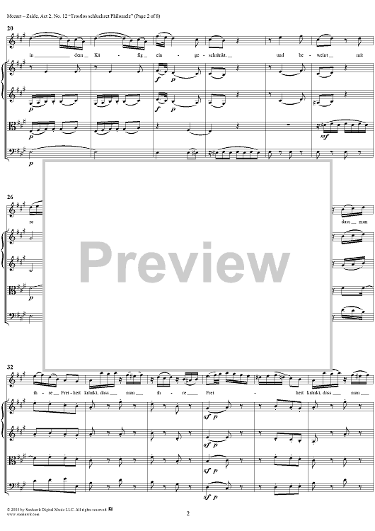 Digital Sheet Music for "Trostlos schluchzet Philomele", No. 12 from "Zaide", Act 2, K336b (K344) - Full Score by Wolfgang Amadeus Mozart scored for Voice and Orchestra; id:291680