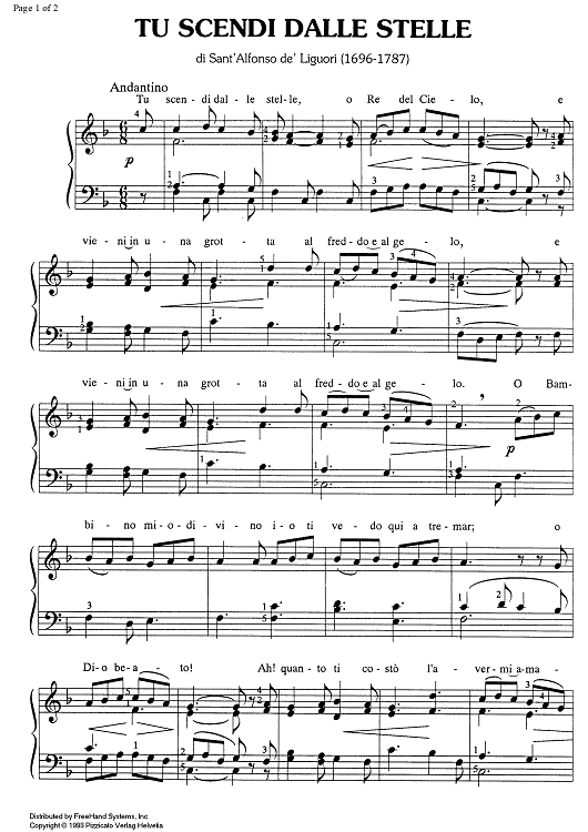 "Tu scendi dalle stelle" Sheet Music by S. Alfonso de' Liguori