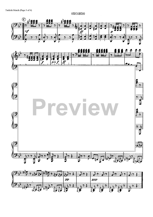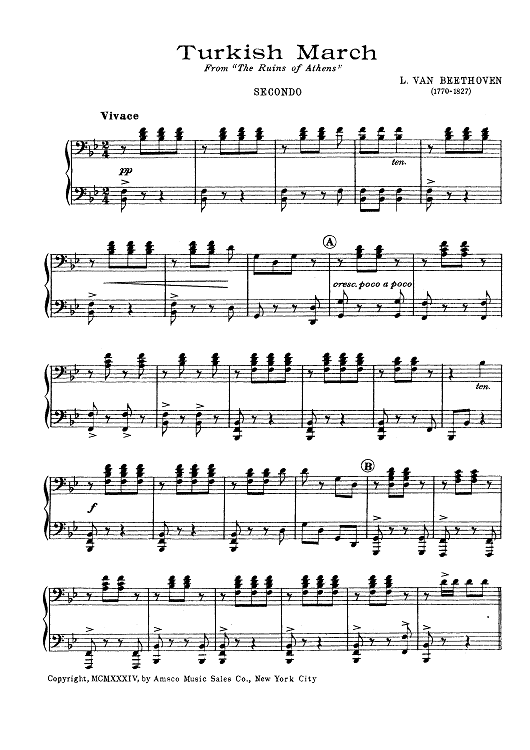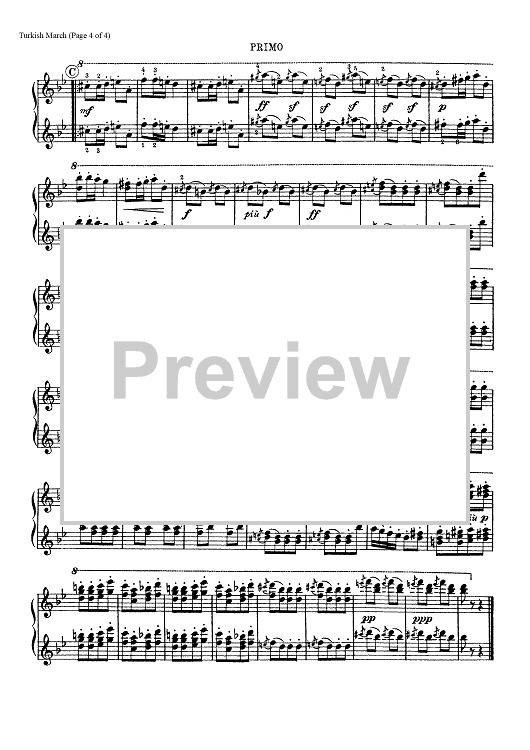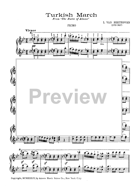 Digital Sheet Music for Turkish March (from "The Ruins of Athens") by Ludwig van Beethoven scored for 1 Piano, 4 Hands; id:460873
