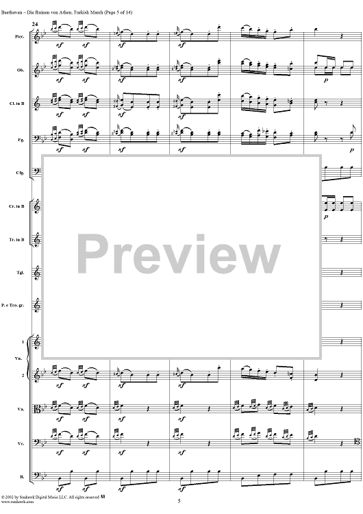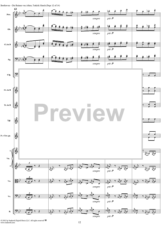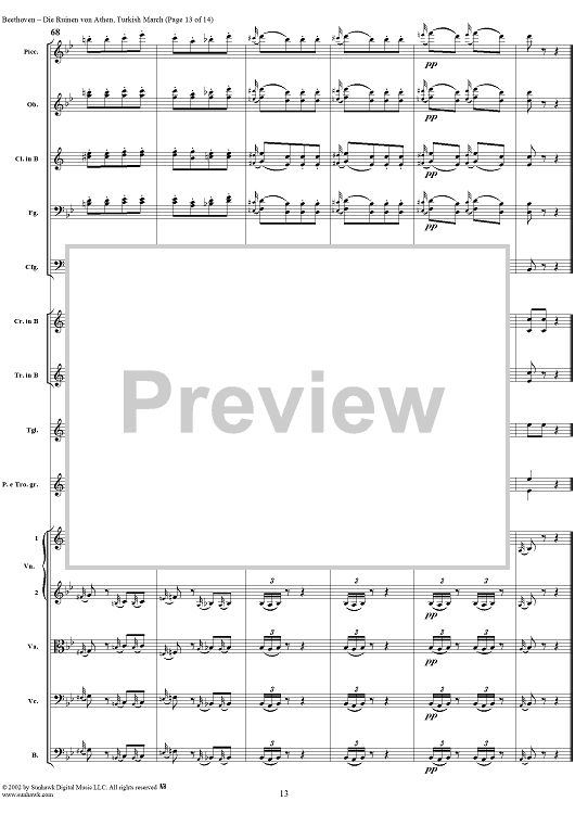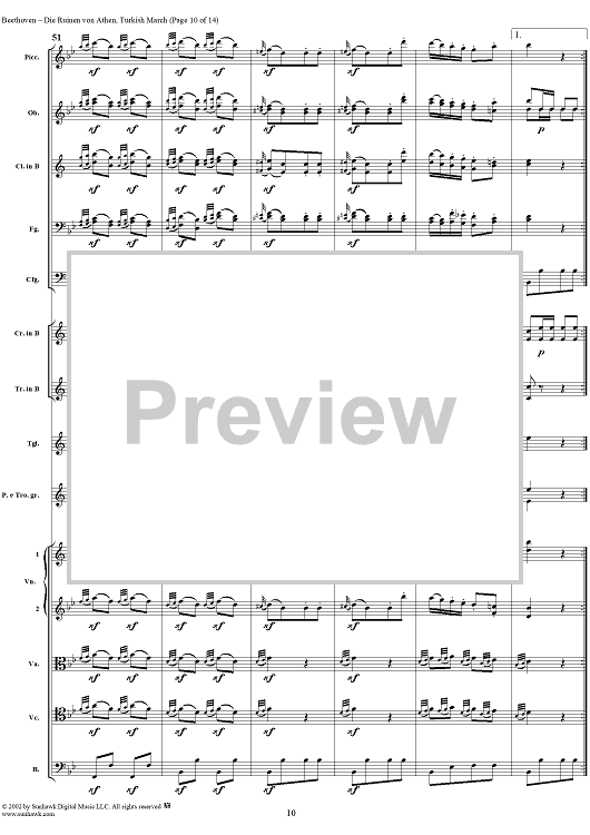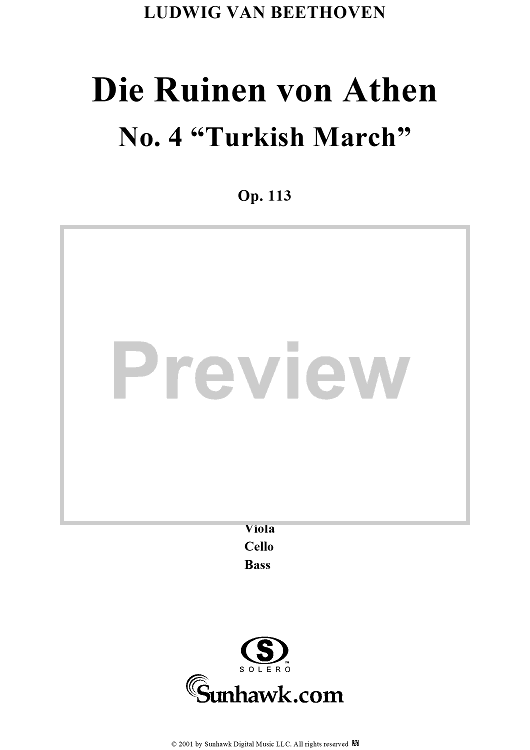 Digital Sheet Music for Turkish March, No. 4 from "Die Ruinen von Athen", Op. 113 - Full Score by Ludwig van Beethoven scored for Orchestra; id:290895